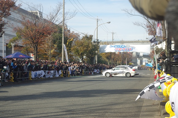 向こう側に見える直線300mの道路が、今回のデモラン特設コースだそうです。