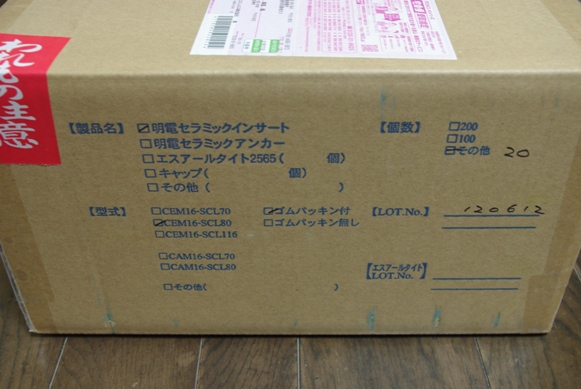 ロンドンオリンピック開幕のこの日、注文しておいた明電セラミックインサート20本が届きました。