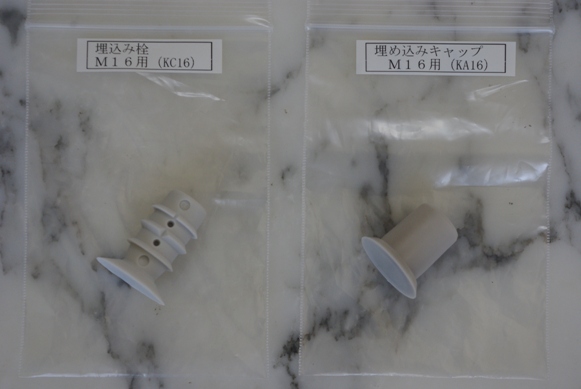 右の埋め込みキャップ (KA16)は、ポリプロピレン製で着脱がし易い構造になっていて、頻繁に脱着する場合はこちらの方が適しているようです。