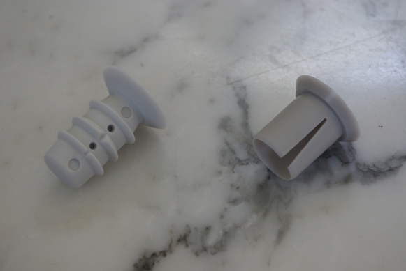 栓とキャップの2種類があり、実際にセラミックインサートに嵌め込んだり外したりして、それぞれの装着感をチェックしたところ、栓はしっかりと穴をカバー出来ること、キャップは着脱しやすいことなど、それぞれの長所を確認することが出来ました。