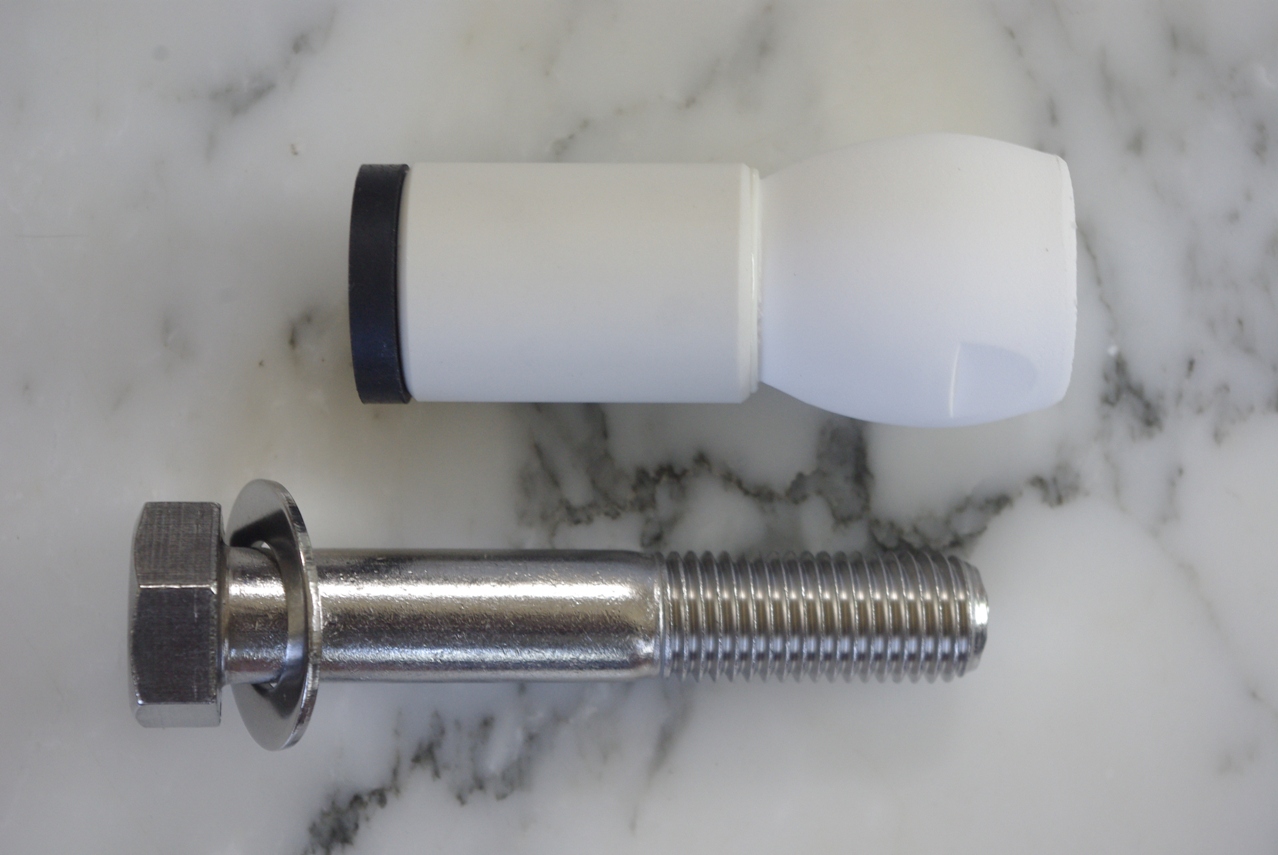 左の埋込み栓 (KC16)は、エラストマー製で右の埋め込みキャップよりやわらかく、ゴムのように変形します。