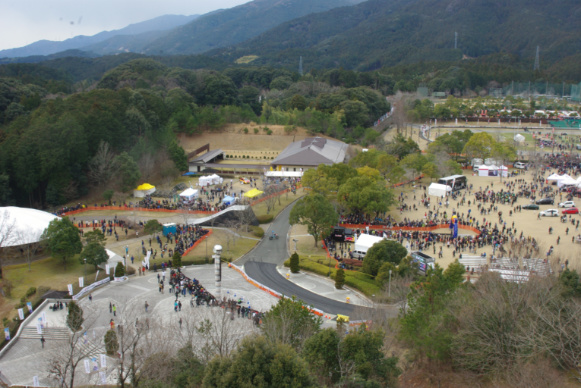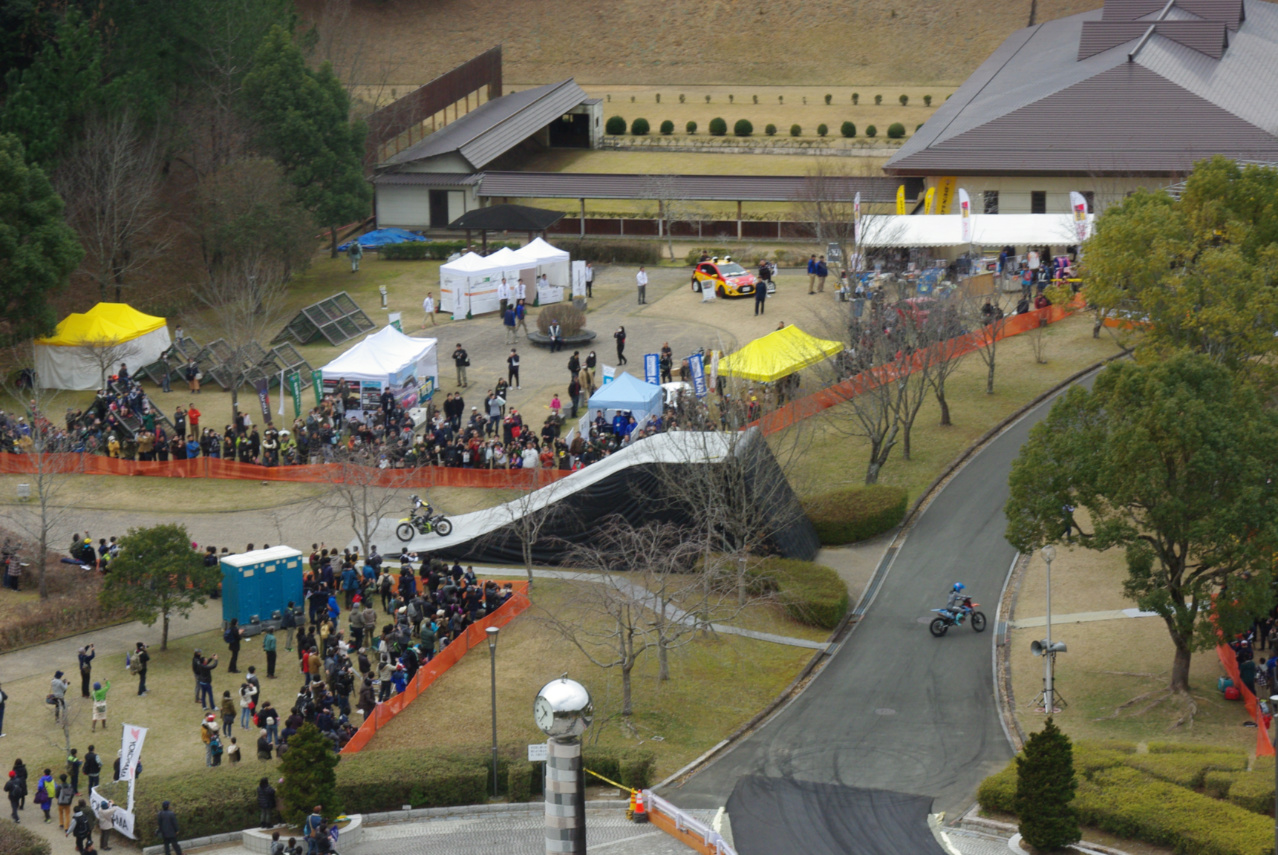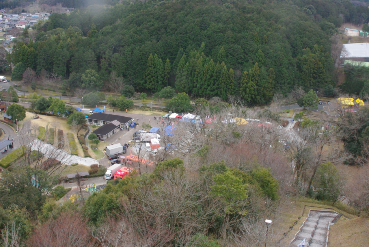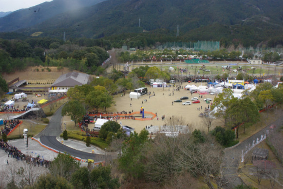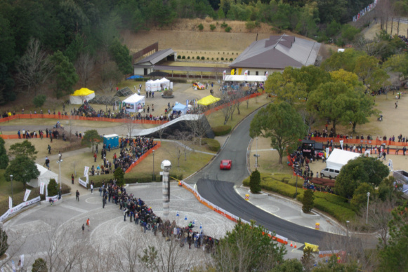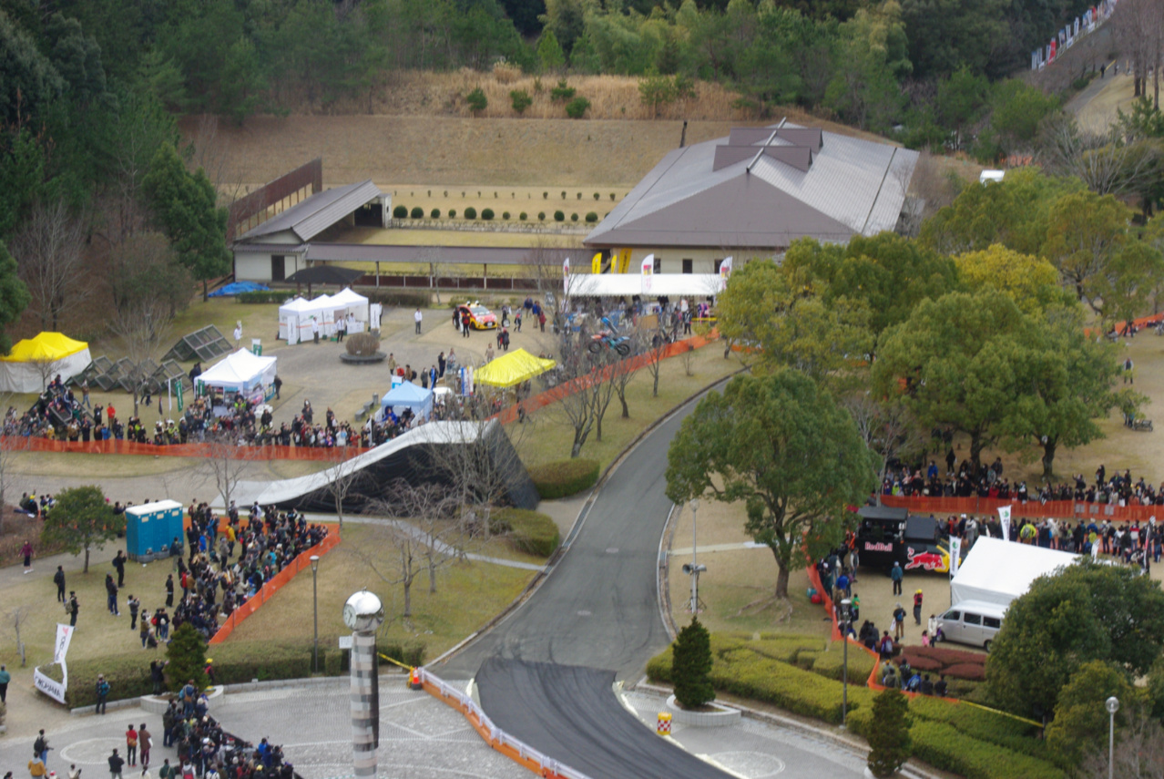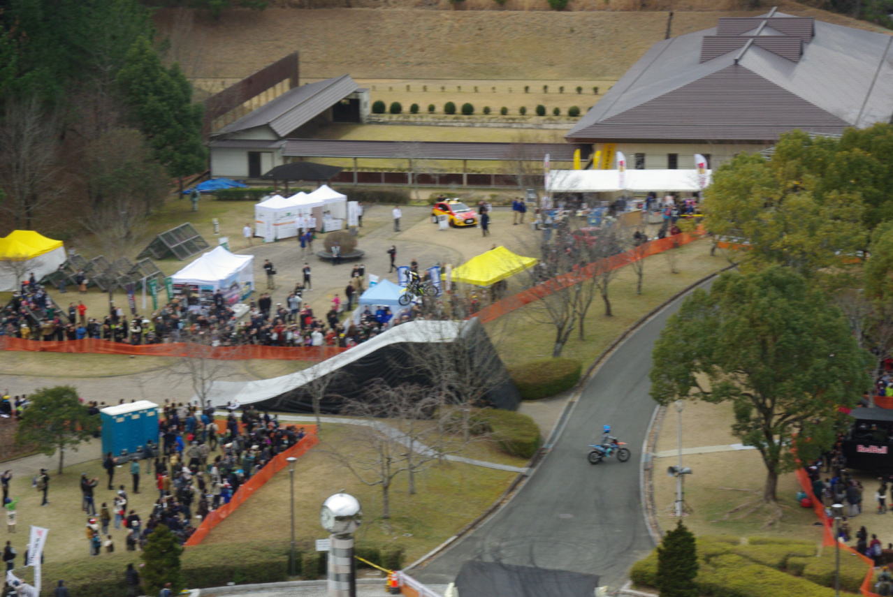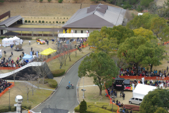 ご覧の通り実に見晴らしが良く、新城ラリーのイベント会場が全て一望できました。