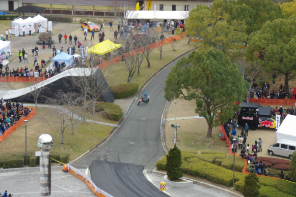 実はこの階段の途中からは、青空広場の特設SSコースが見渡せる絶好の撮影ポイントになっているんです。