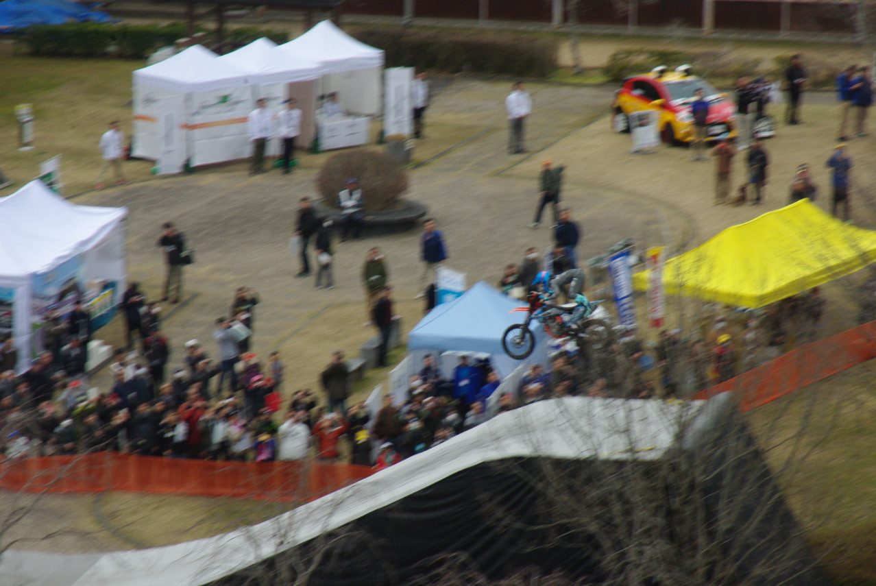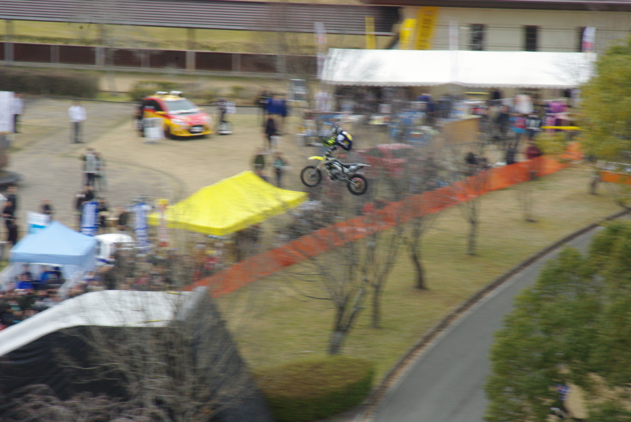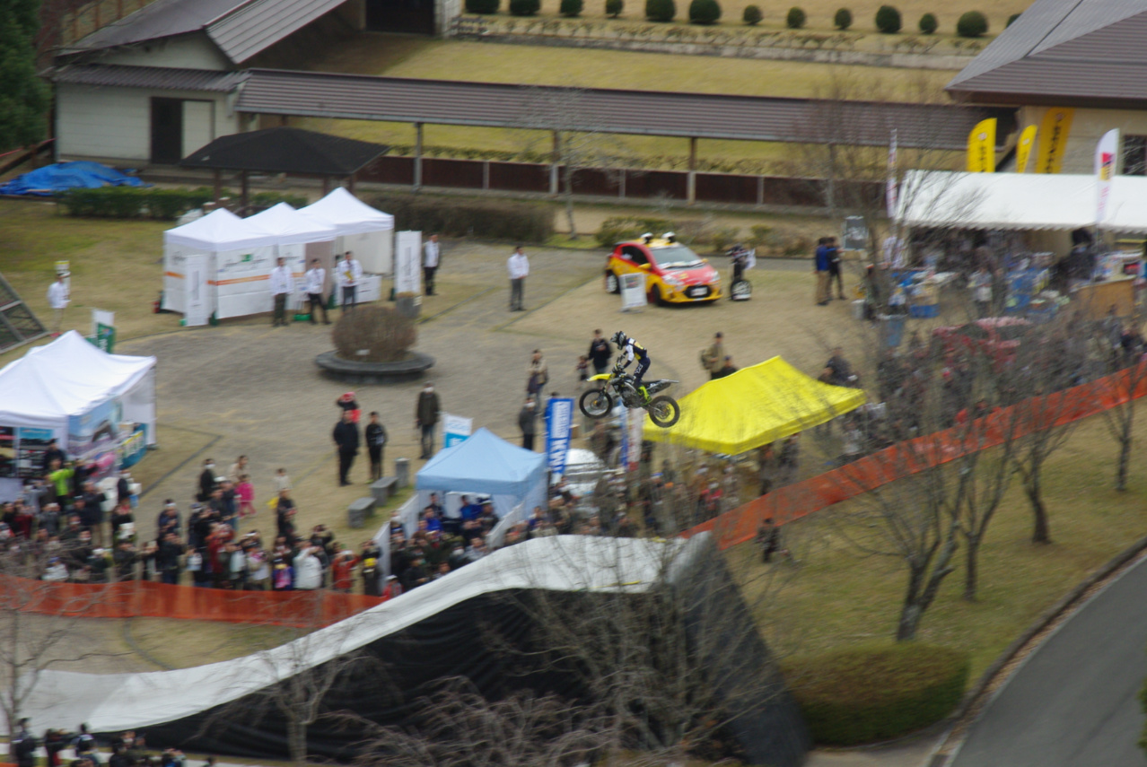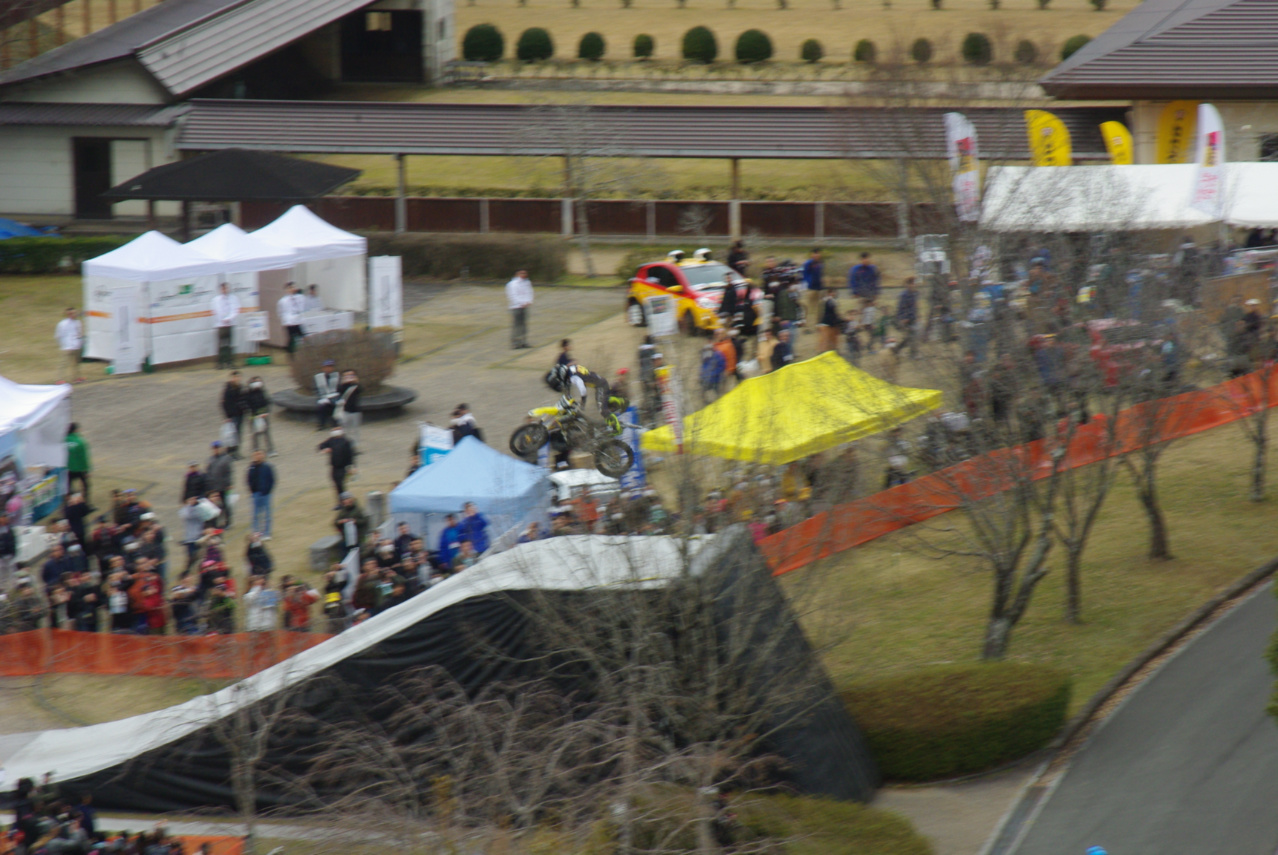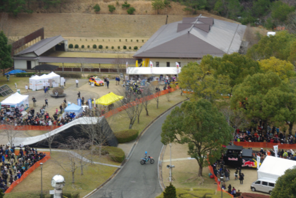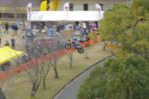 再びSSコースに目をやると、丁度これからスーパーモトクロスのジャンプパフォーマンスが始まるところでした。