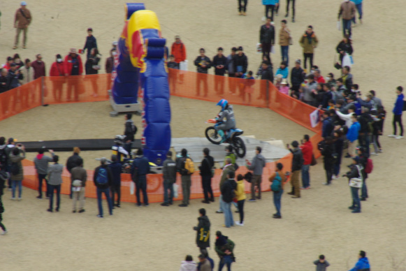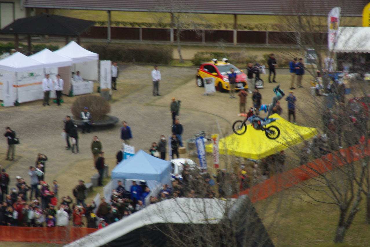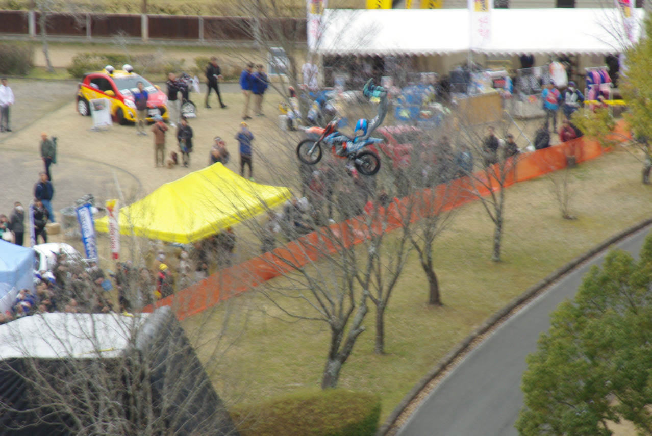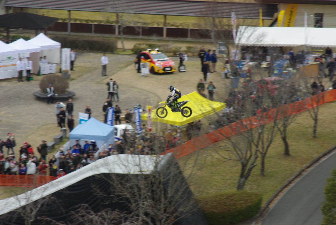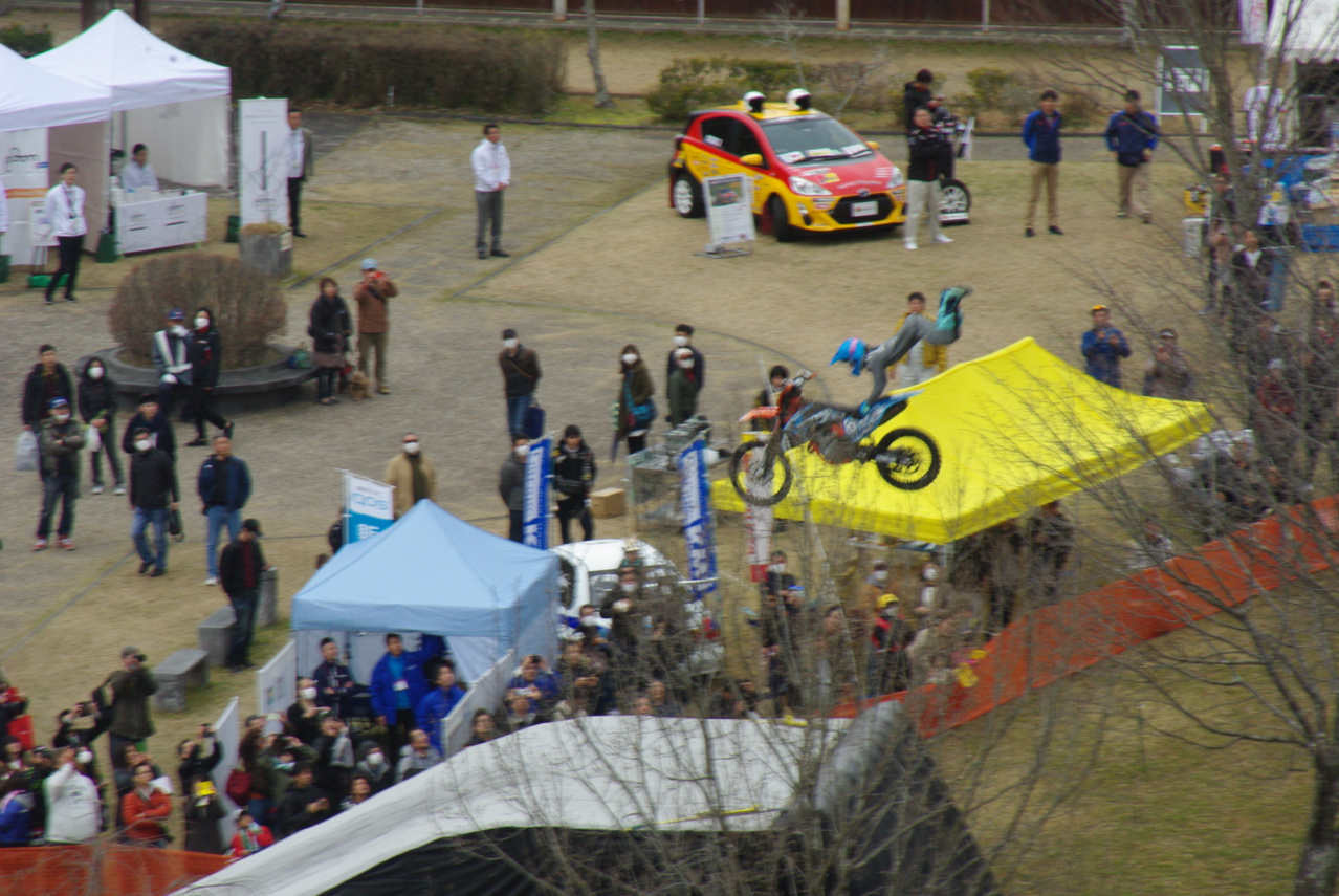 再びSSコースに目をやると、丁度これからスーパーモトクロスのジャンプパフォーマンスが始まるところでした。