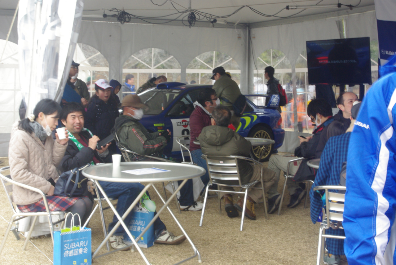 緒方さんから意外なほどの歓迎を受け、丁度ラリー競技は公園SSの最中でテントの奥は、SS観戦の特等席だからとご案内下さいました。