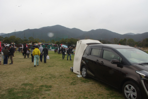 雨がばらつく中、目当ての昼食は調達しましたので、早々にオフ会エリアに戻ることにしました。