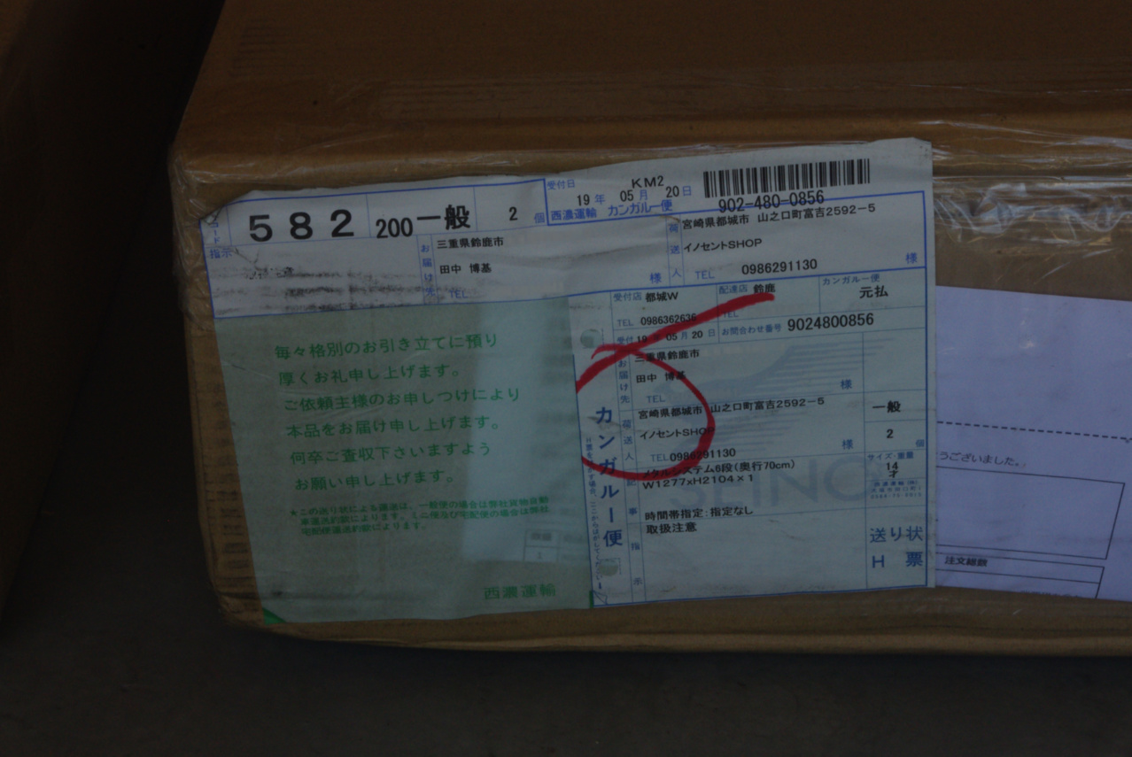 その荷物というのは、このコーナーに置いていたあのホイールの入った箱です。