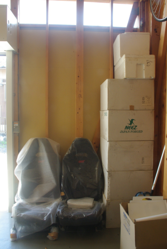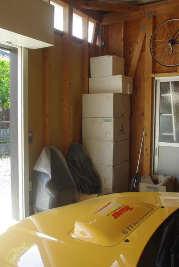 角っこに積み上げている白い箱は、かつては愛車の現在のホイールが入っていました。