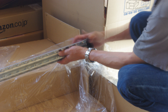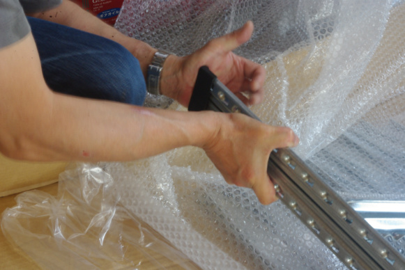 フレームを含む中身は、すっぽりとビニールシートと気泡緩衝材で丁寧に二重に包装されていました。