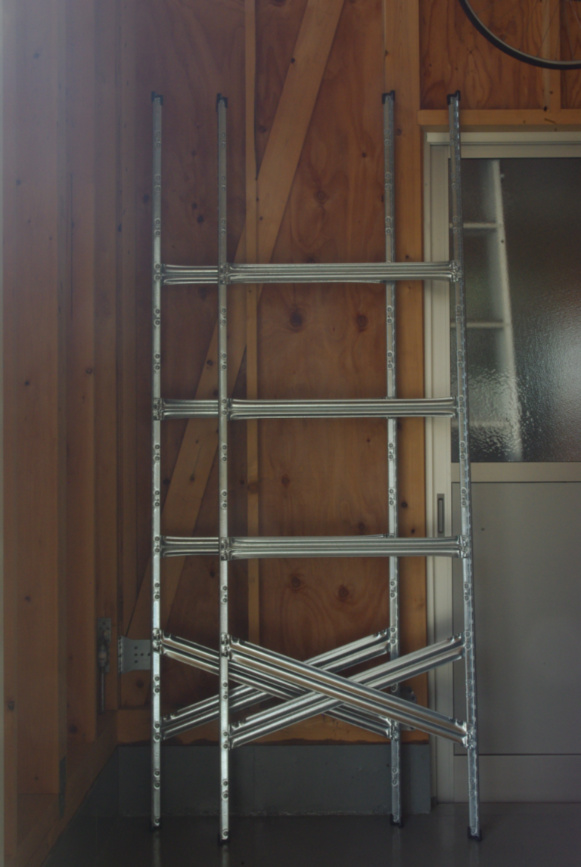 兎に角、最上部のビームを前後どちらか一本取り付けてしまえば、前後の支柱が一体になっているサイドフレームは自立しますので、後の作業は取り立てて難しいことは無いと思います。