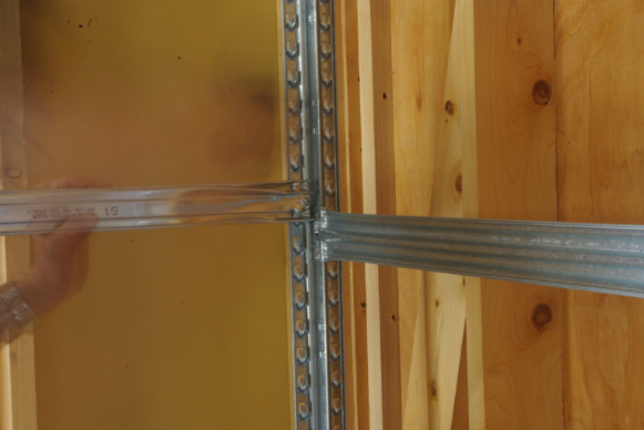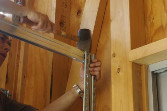 このときにゴムハンマーを使って、フレームの受け穴(ピッチ)の上下2本のツメにビームを確実に差し込んで、一番奥までしっかりと叩き込みます。
