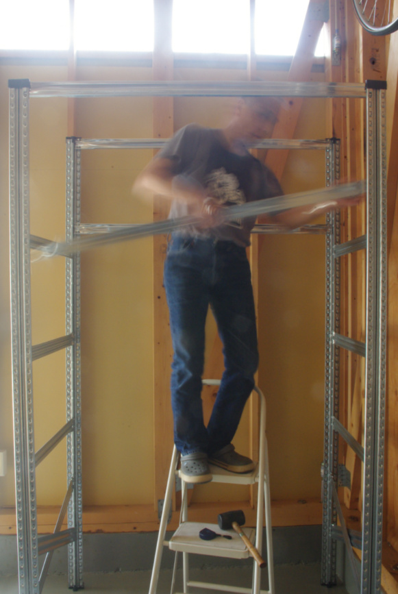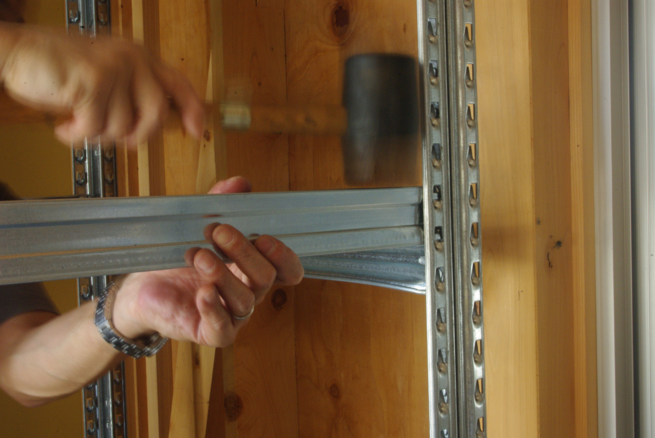 それにしても、こんな大きく立派なスチール棚が、このハンマー一本で組み立てられるのですから、実によく出来た製品ですね。