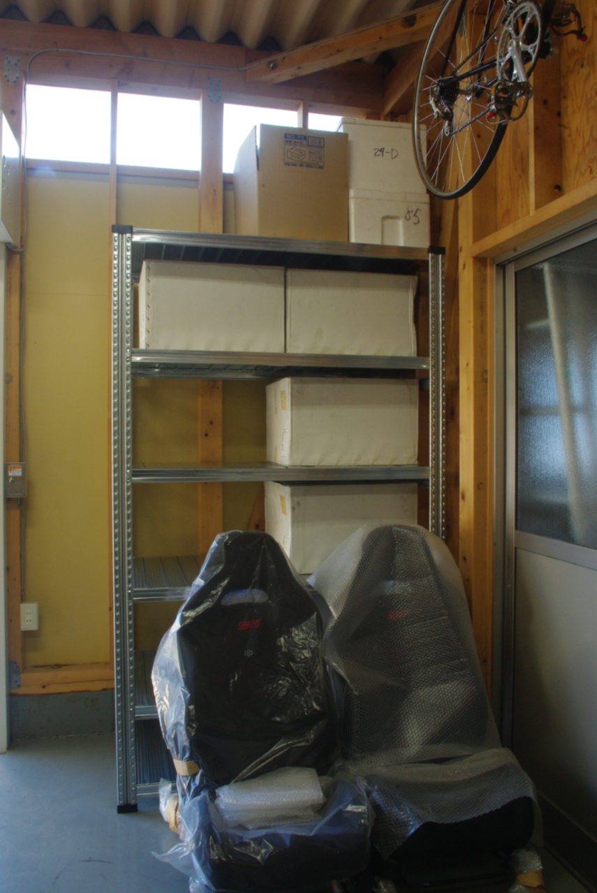 このスチール棚の設置を以て、このガレージでやり残したと感じる内装上の懸案はほぼ解消したと思います。