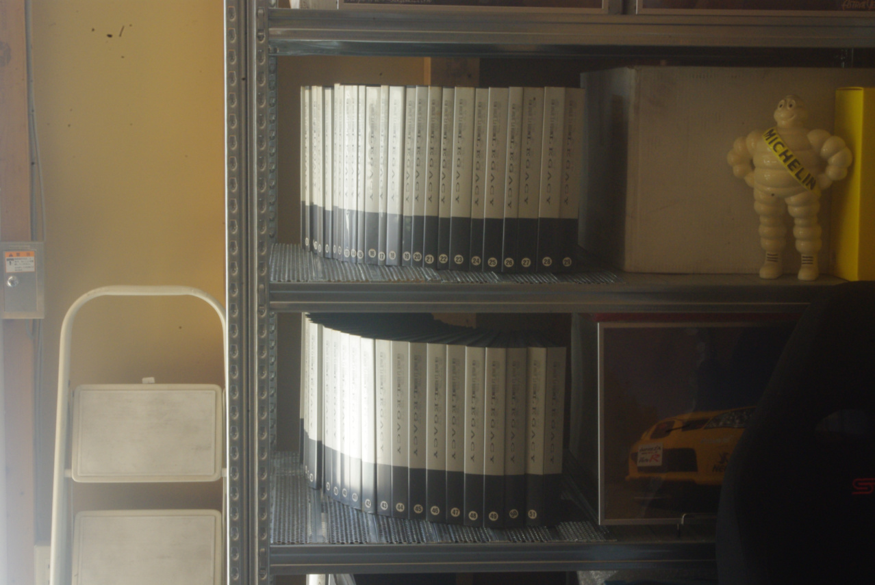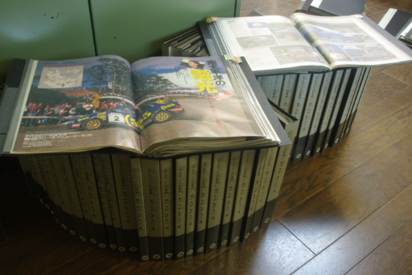 この雑誌記事スクラップファイルをこうしてディスプレイすることは、ガレージが完成してからの念願のひとつでした。