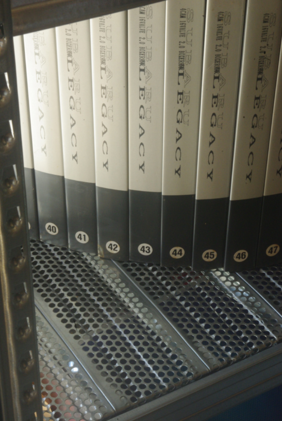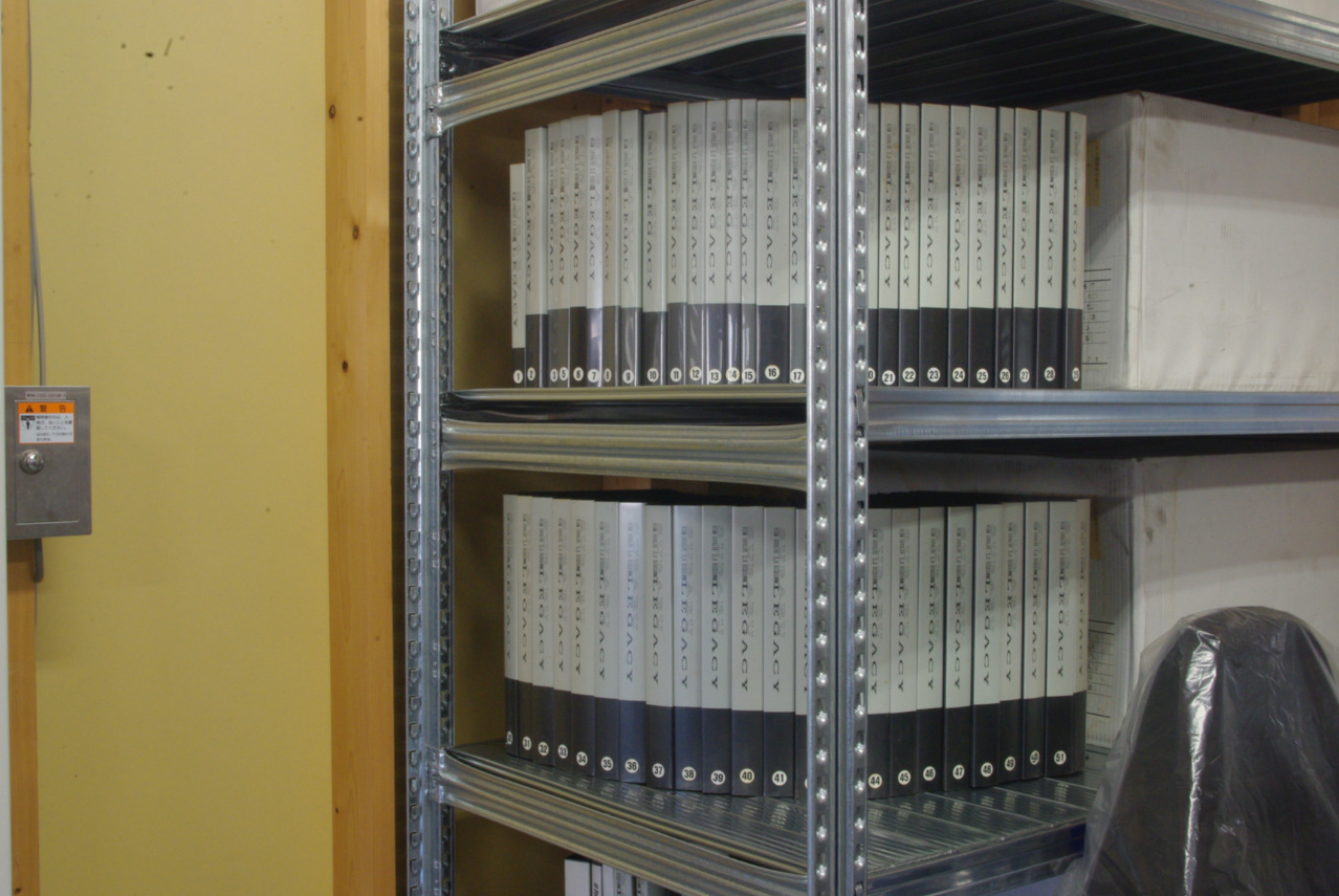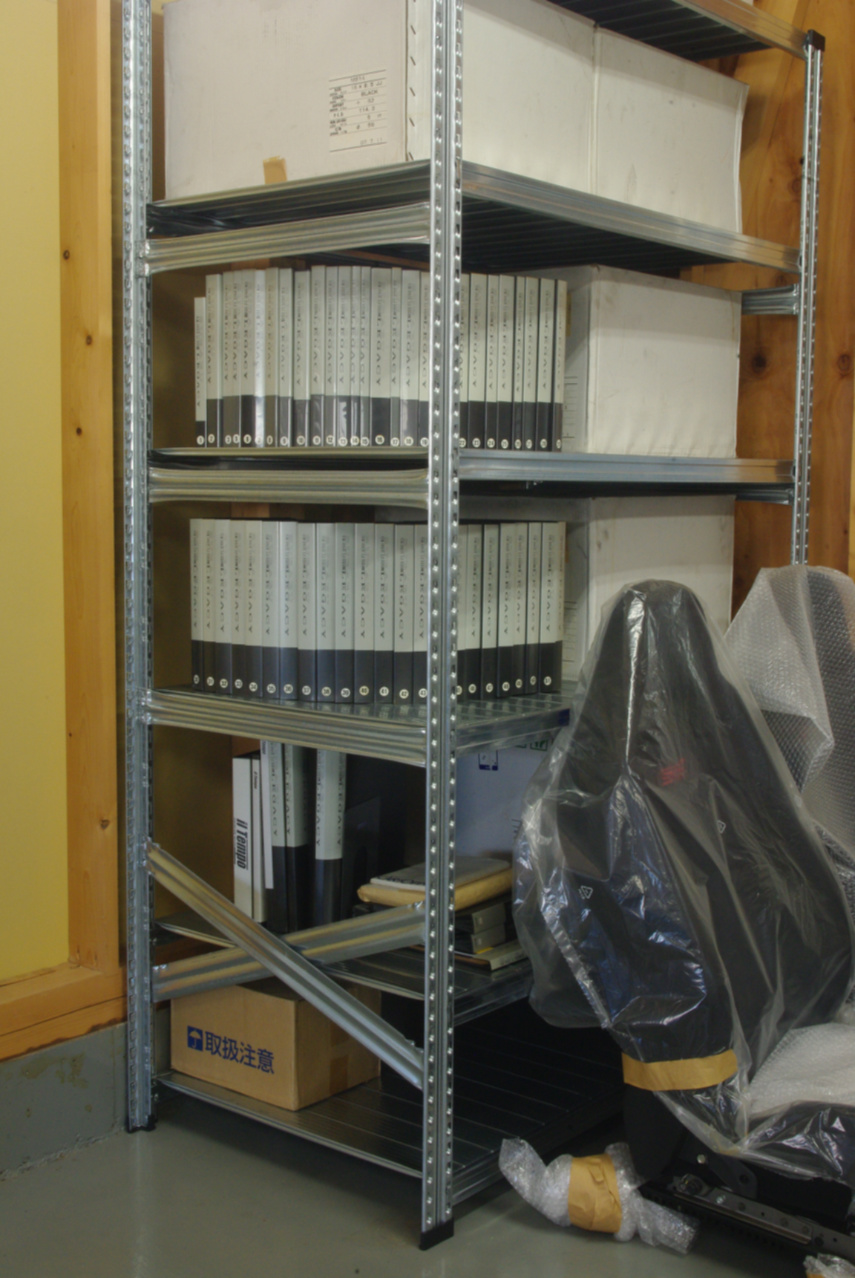 このスクラップファイルを置いている棚面を、パンチング棚板に交換します。