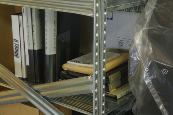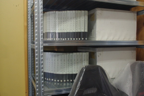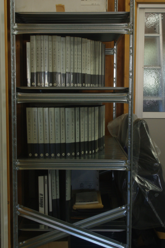 スクラップファイルを一旦退かし、標準タイプの棚板を取り外しました。
