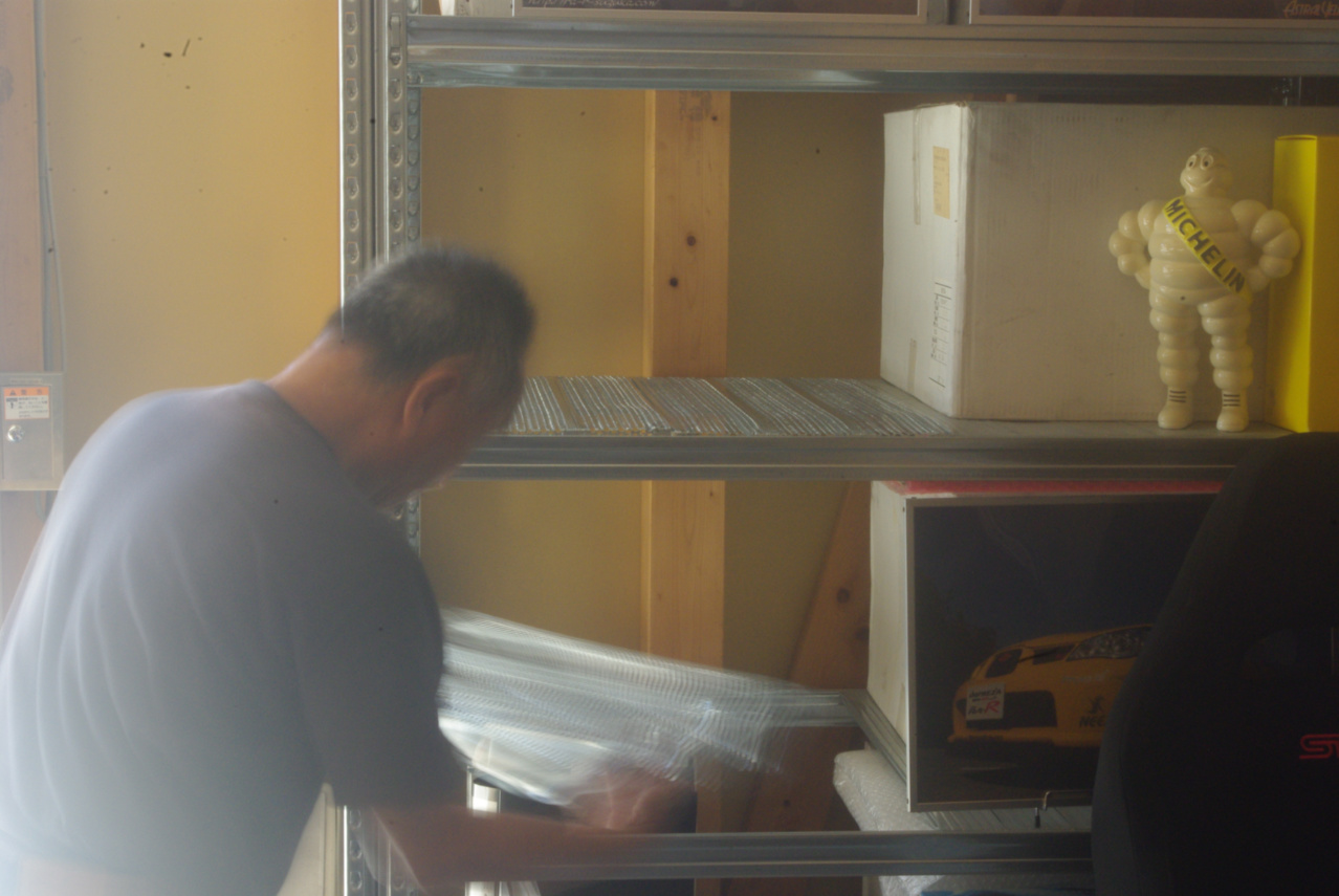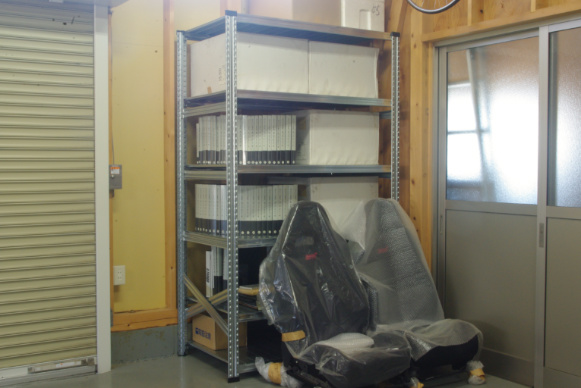 さて、早速ガレージに設置したMETALSISTEM スチール棚の例のスペースに収納しました。