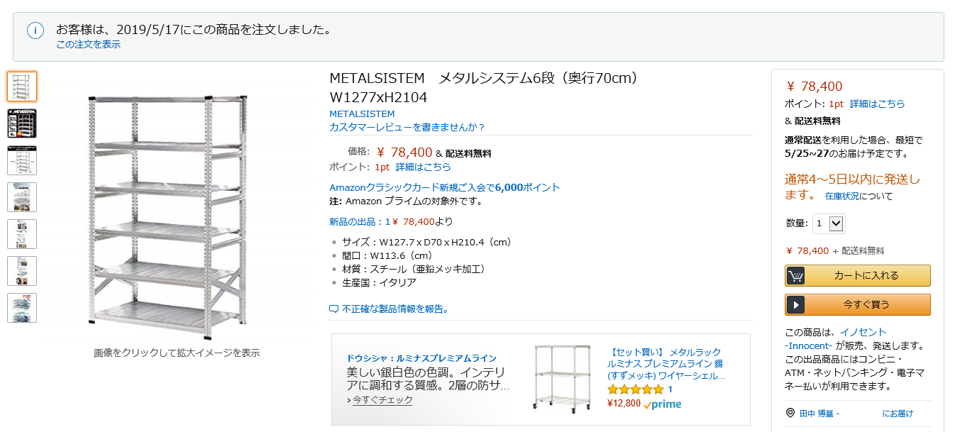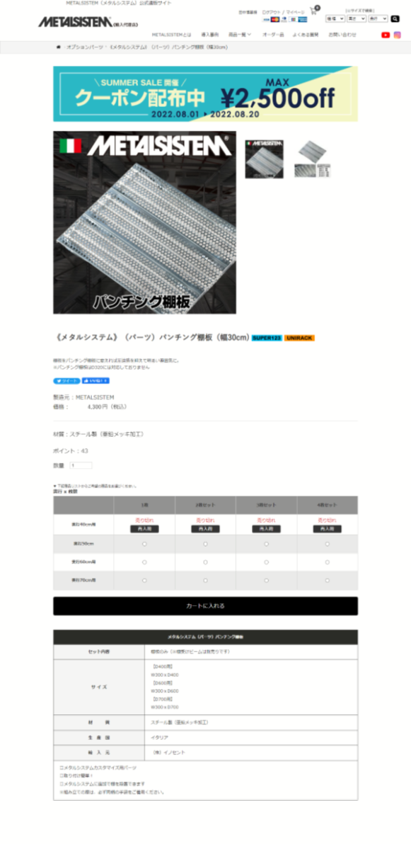 この日、METALSISTEM公式通販サイトにこのオプション商品を注文しました。