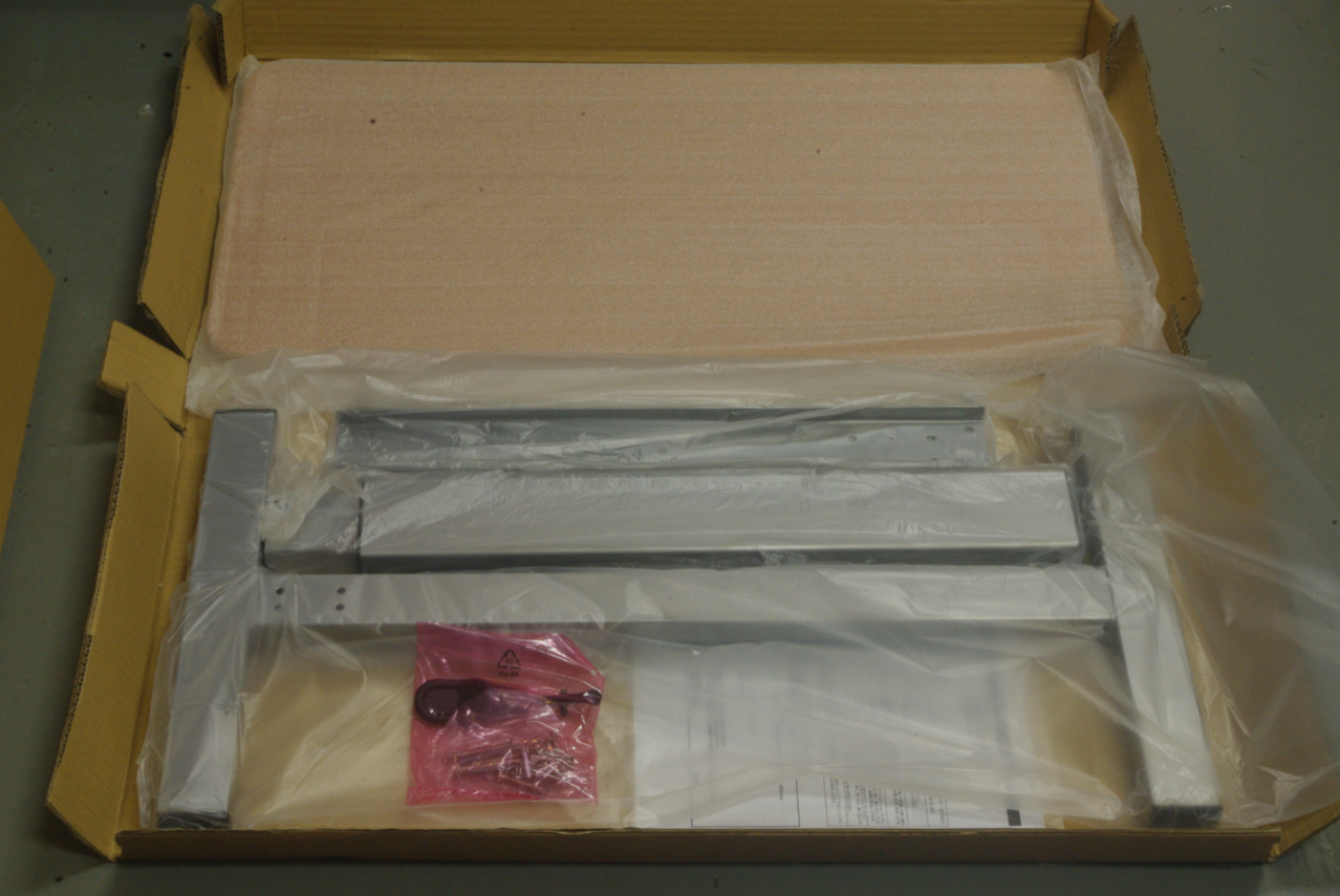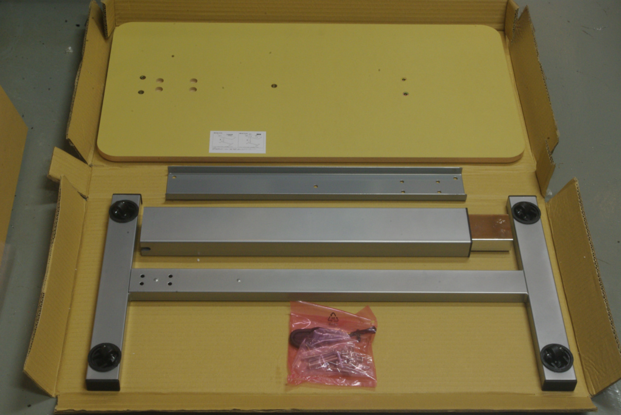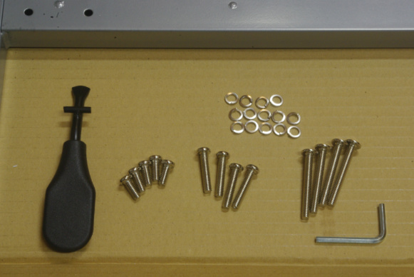 中には4点の大きなパーツと、組み立て用極低頭キャップスクリューボルト3種類13個、バネワッシャー14(その内1個は予備)、そして昇降用レバー六角レンチが入っていました。