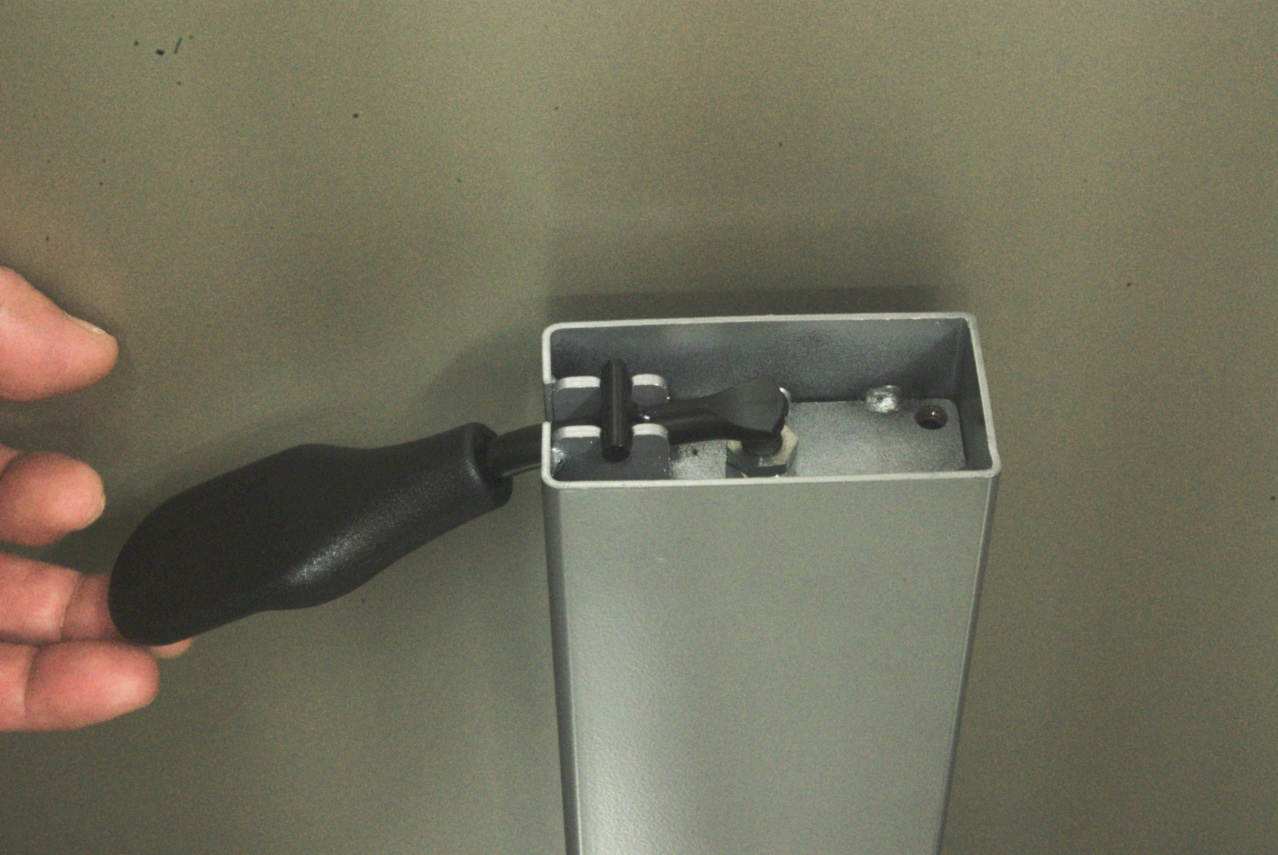組み立て説明書通りまず、支柱の頭の部分に昇降用レバーをはめ込みます。(と言ってもこのままこうして手で支持していないと外れて落ちてしまいます)