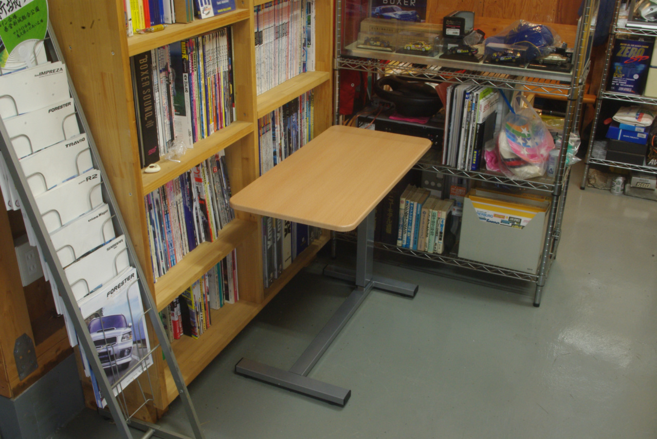 今後この場所が書籍閲覧等専用アップダウンデスクの定位置になります。