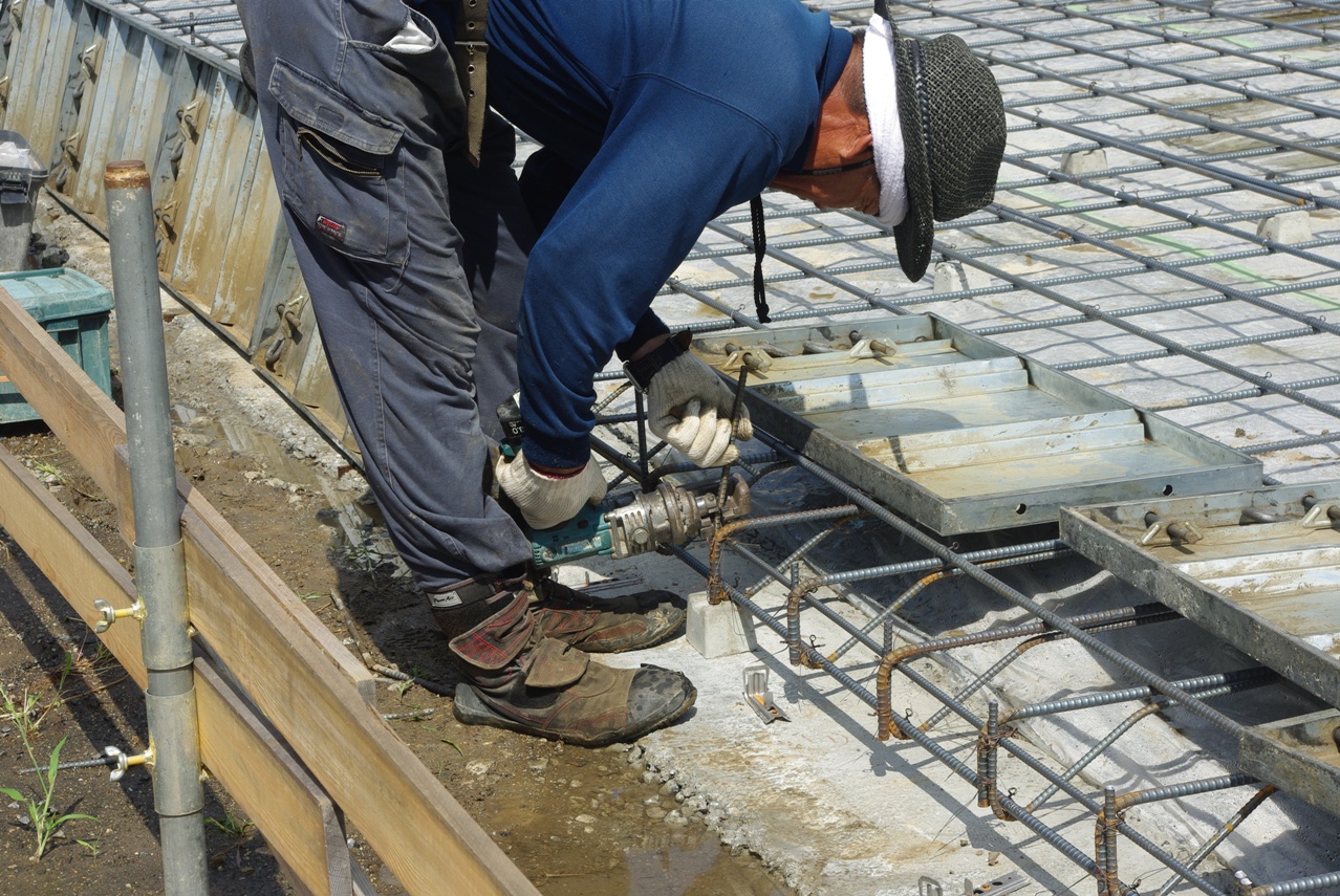 ガレージ入り口付近の余分な鉄筋を切り取っています。
