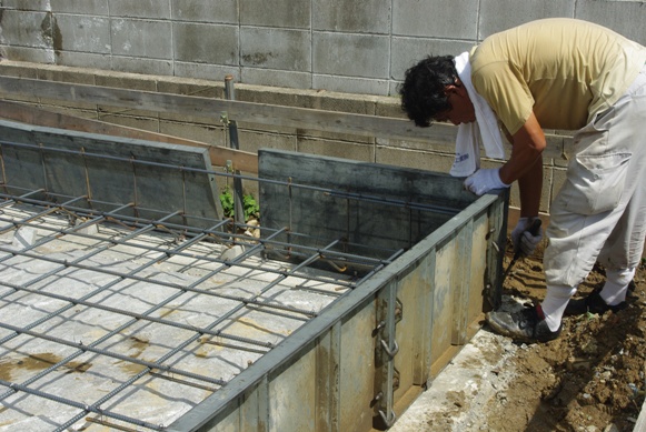 ここではコンクリート型枠のパネルを並べて、型枠を設置する準備をしていました。