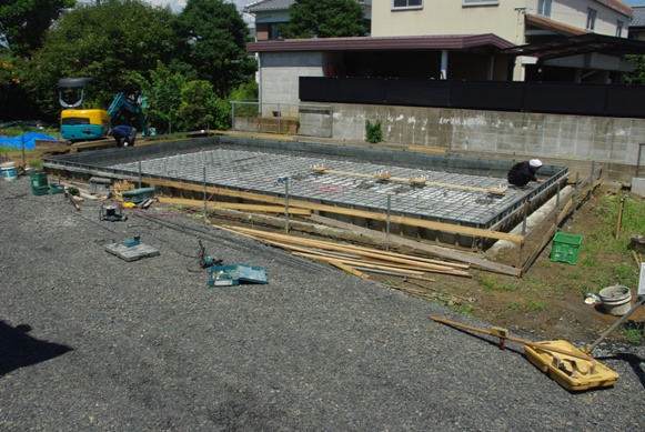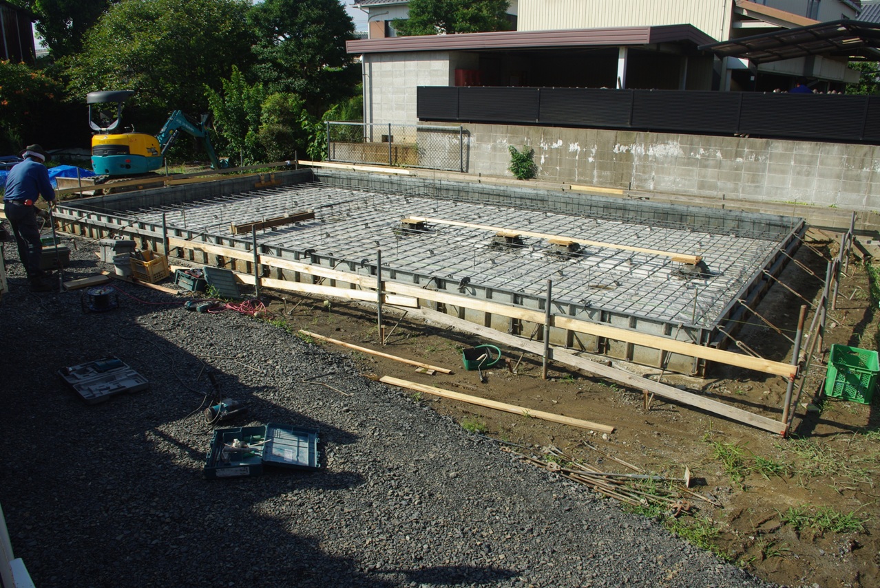 本日もお天気が良く、基礎工事業者の方は、朝7時からみえて、私が写真撮影に出た時には、鉄筋も全て組み付けられて、既にかなり作業が進んでいました。