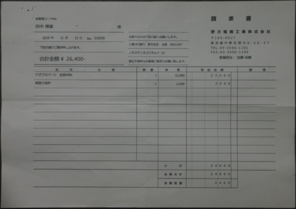 追加工の見積もりをいただいた11月15日からほぼ1ヶ月ほどいろいろ考えた末、やはりこれは最後までやらねば年を越せないと思い、本日追加工の入金とハンドルバーの宅配を済ませました。