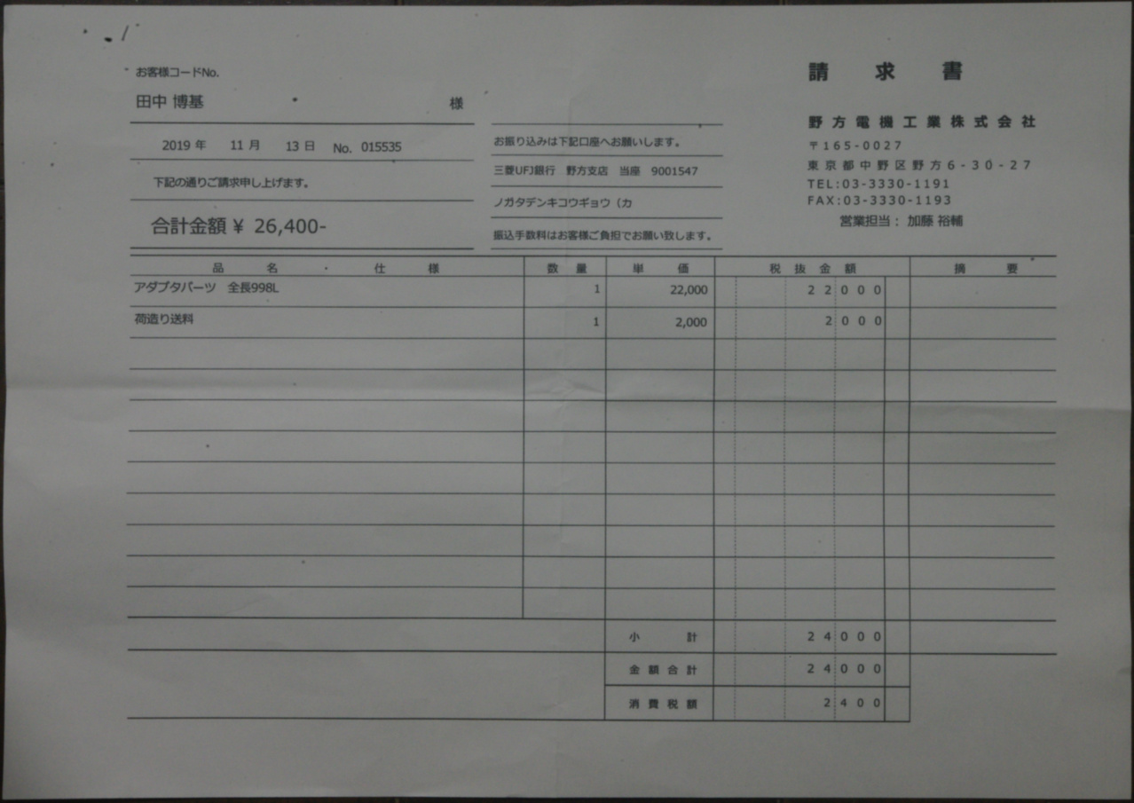 左の定規を添えて撮影しましたこれら3枚の画像群は、ネットで見つけた野方電気工業株式会社という企業に、11月13日にメールで見積もりを依頼した際に添付した画像です。