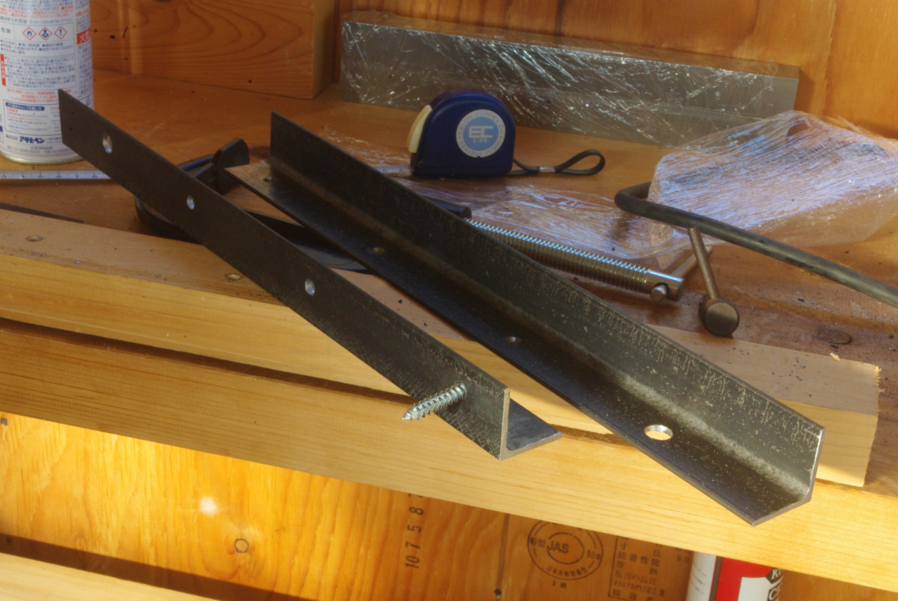これも、やはりSTi純正スポーツシートオフィスチェア用のアンダーパネル製作のときに用意したスチール製Lアングルステーですが、これを使ってある作業を行いました。
