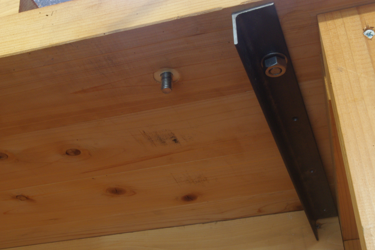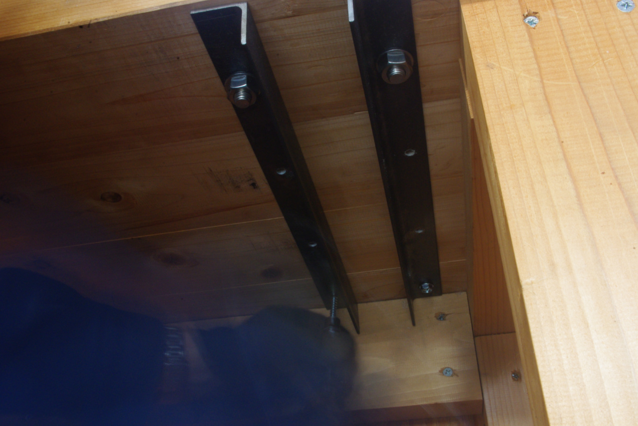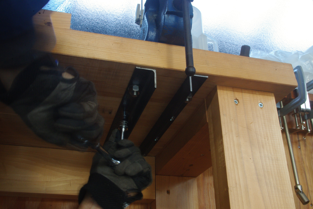 これで作業台天板裏、万力台座部分の補強作業が終わりました。