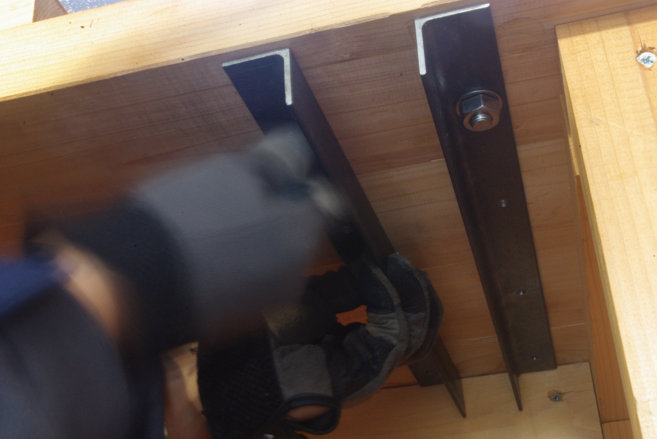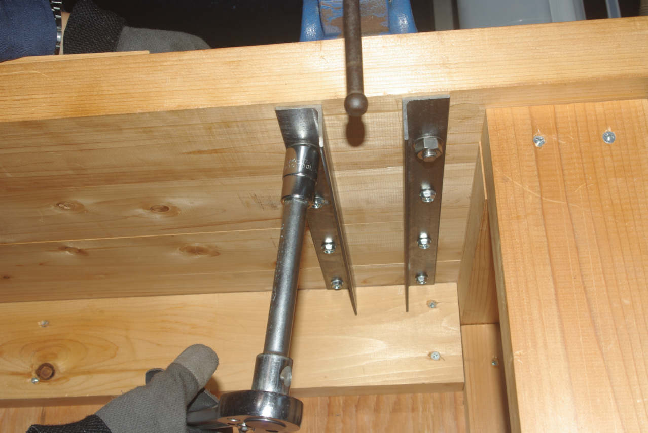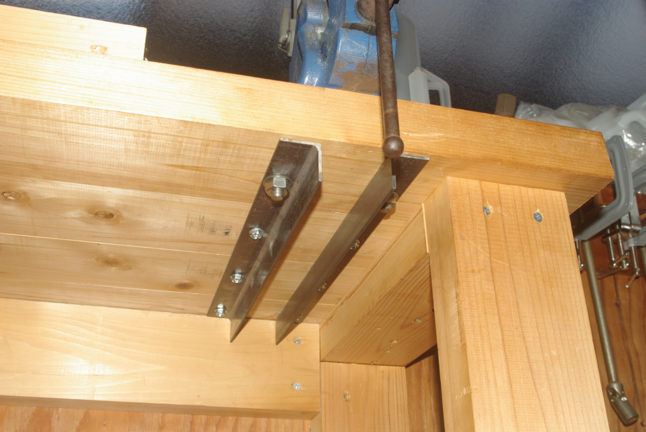 これで作業台天板裏、万力台座部分の補強作業が終わりました。