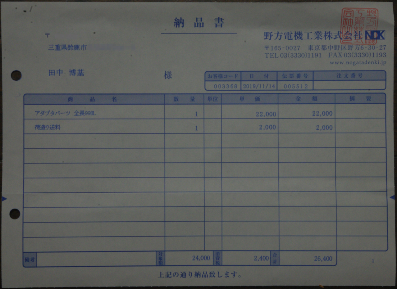 頂いた複数の見積書を検討した結果、最終的にアダプターの長さは998㎜のものに:決定しメールで注文しました。