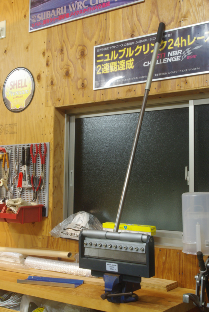 2019年10月22日に購入し、25、26日とSTi純正スポーツシートオフィスチェア用アンダーパネル製作のため、2㎜厚、幅300㎜のA5052アルミ合金板材を折り曲げるために、大活躍したのがk012メタルブレーキでした。