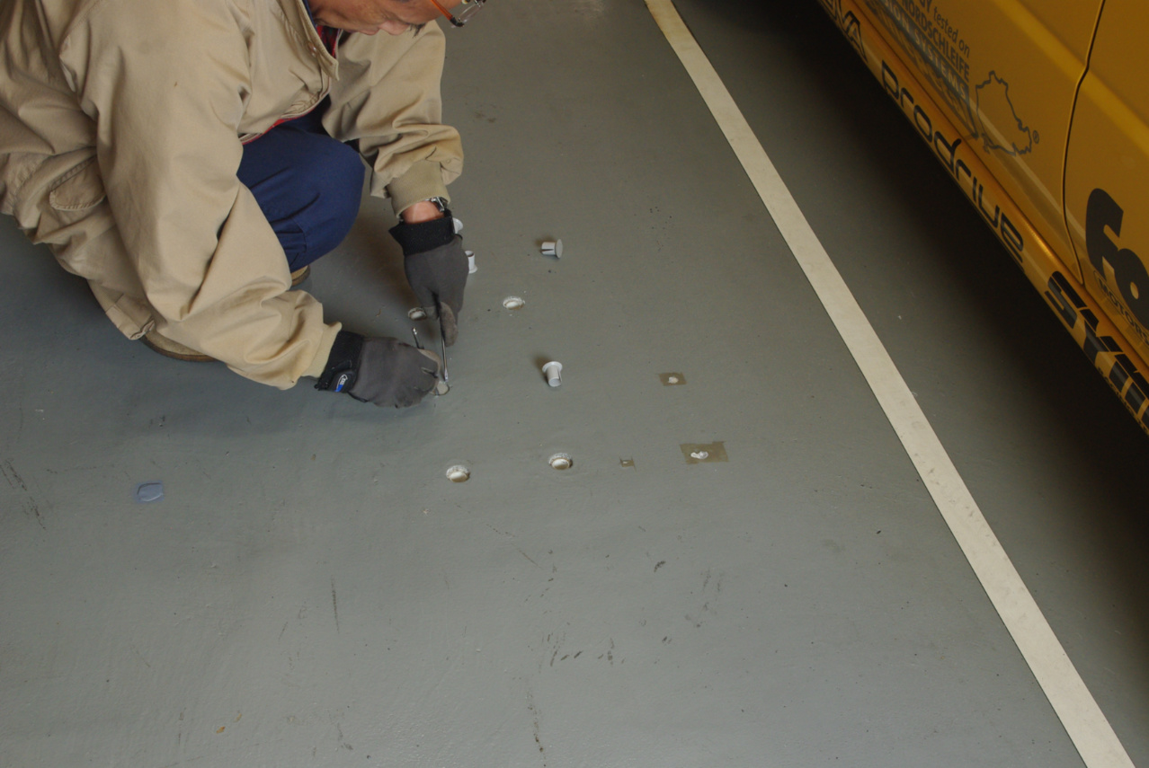 続いて車両右側のリフト支柱を、ボルトで床に固定しました。