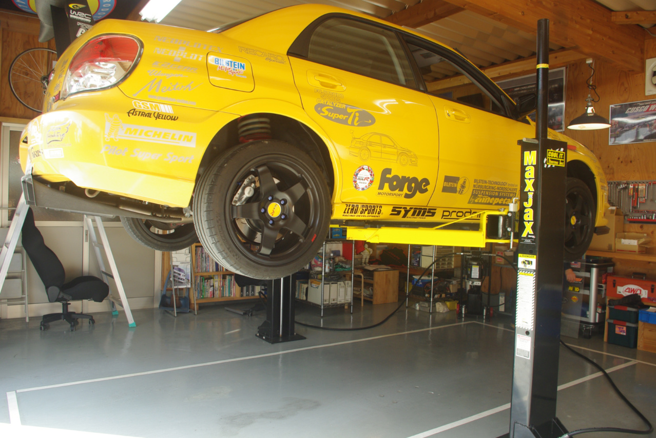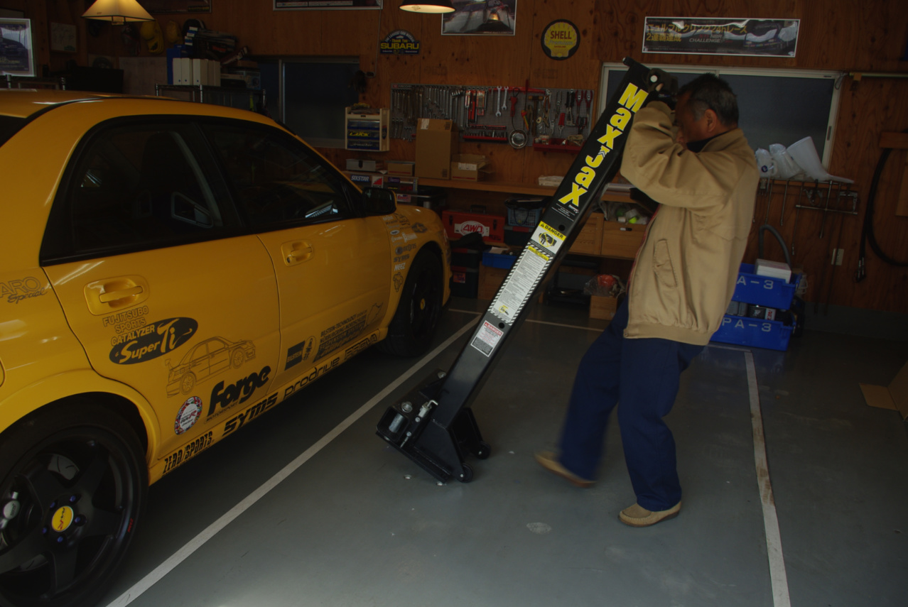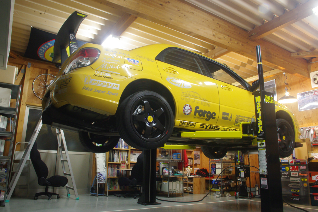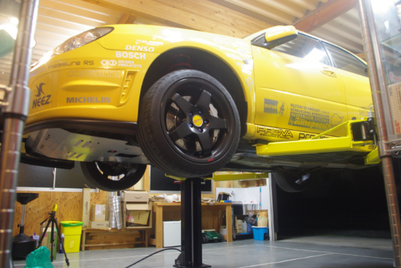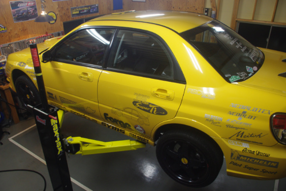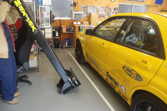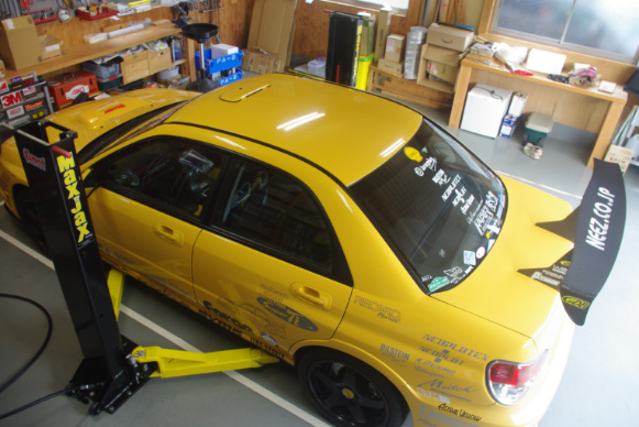 ということで、愛車RA-Rをリフトアップの定位置に駐めました。