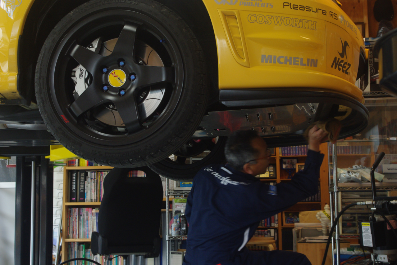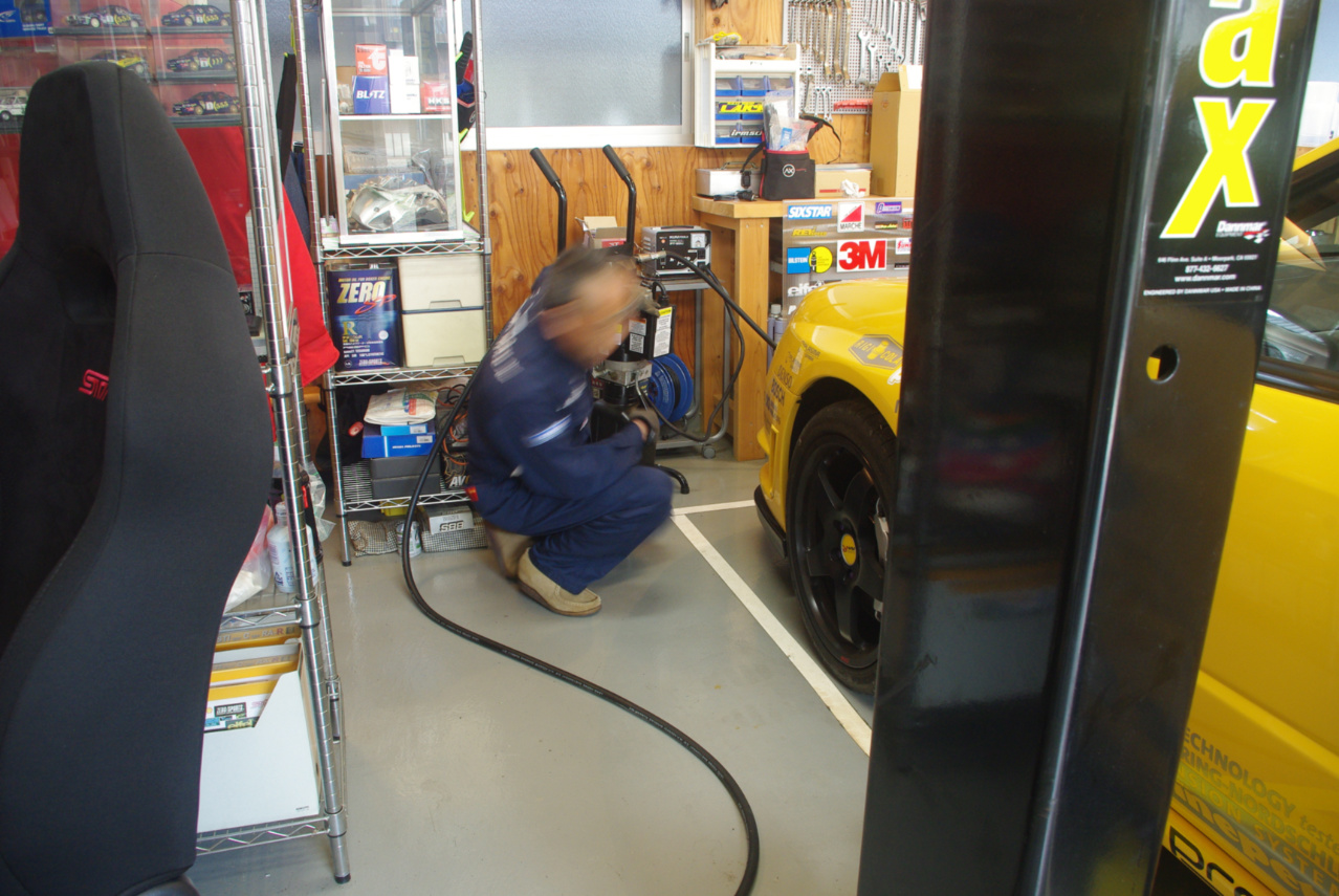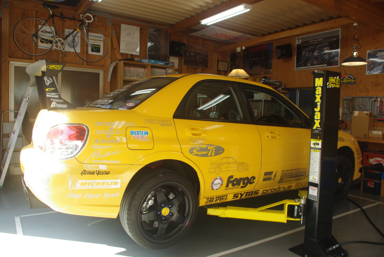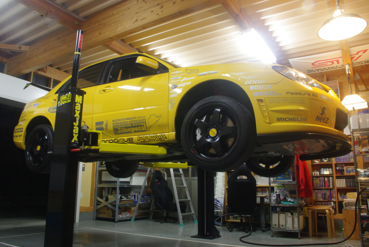 ということで、愛車RA-Rをリフトアップの定位置に駐めました。
