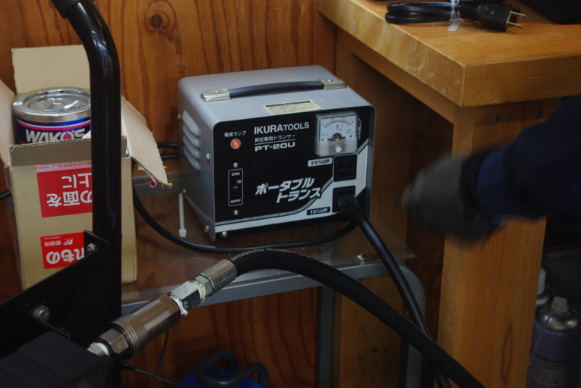 昇圧トランスを介してコントローラーの油圧ポンプ電源を接続しました。