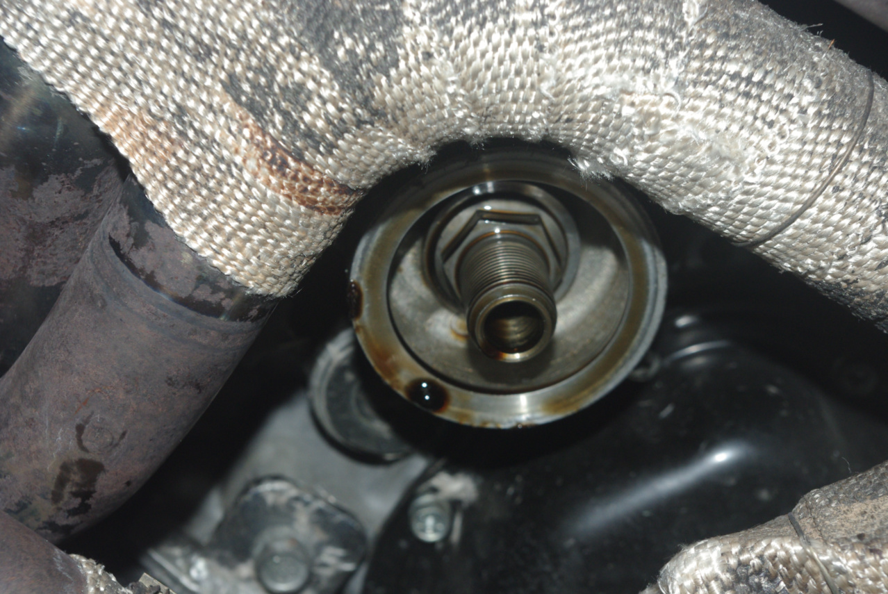 そのまますぐに取り外さず、ある程度緩めると排出されるオイルが溢れ出てきますので、それがある程度収まるまでこのまま待ちます。