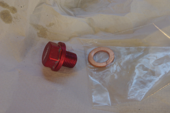取り外したドレンプラグは、クリーナーを使って汚れを落とし、銅ワッシャーのガスケットは新品を用意しました。