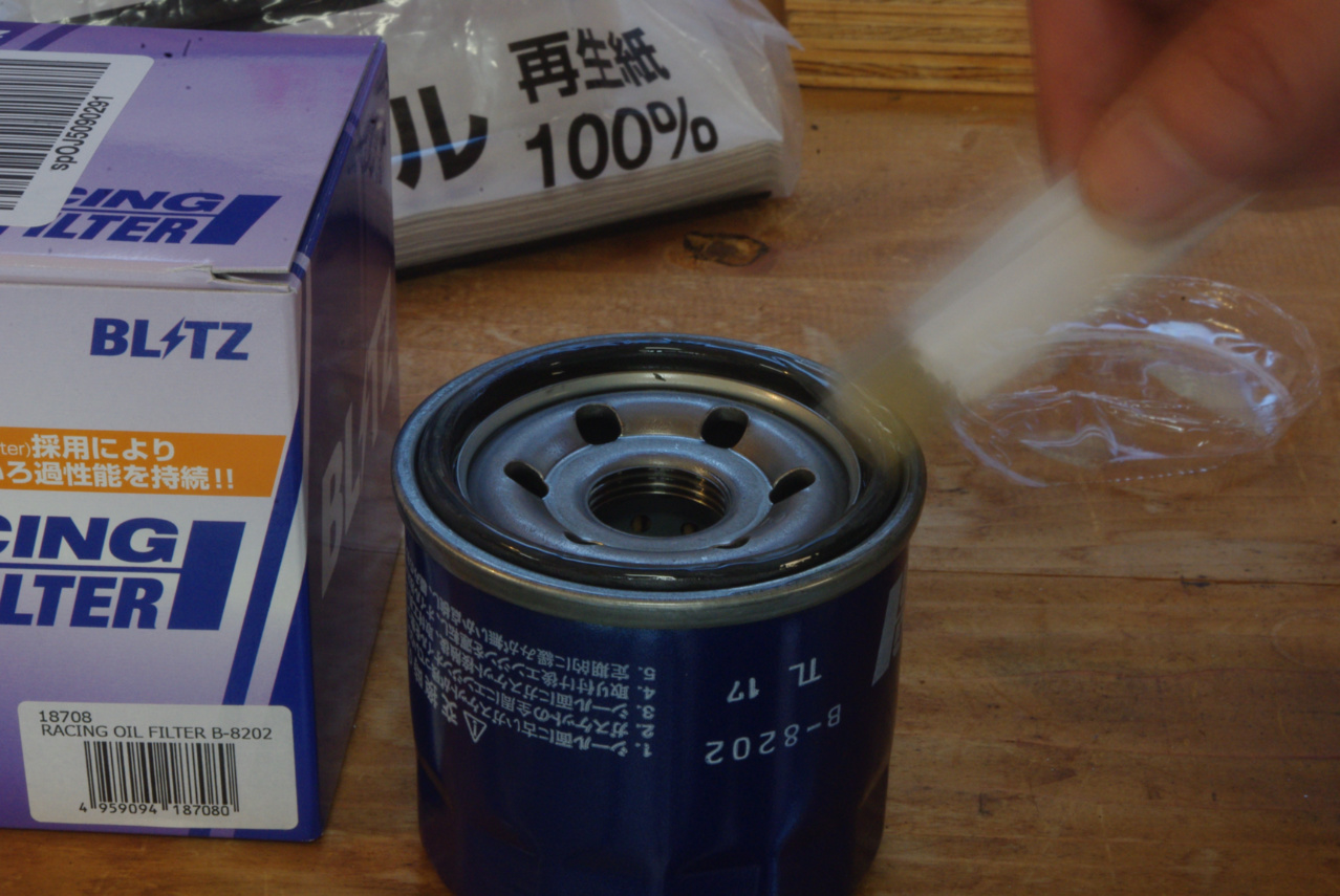 フィルターのOリングはドライなので、エンジンオイルを塗布しました。