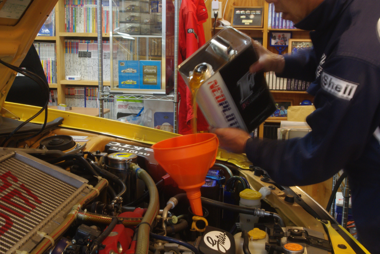 入れすぎには注意し、給油途中で止めてエンジンを回して暖気した後、オイル量を計測しながら不足分を足していきます。