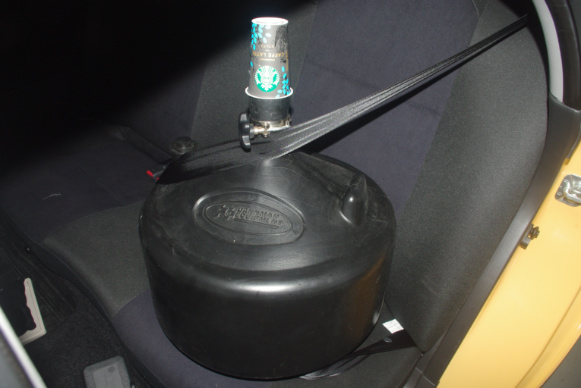 給油途中、不意にファンネルが倒れたりしないようにタオルを詰めて支えを作りました。