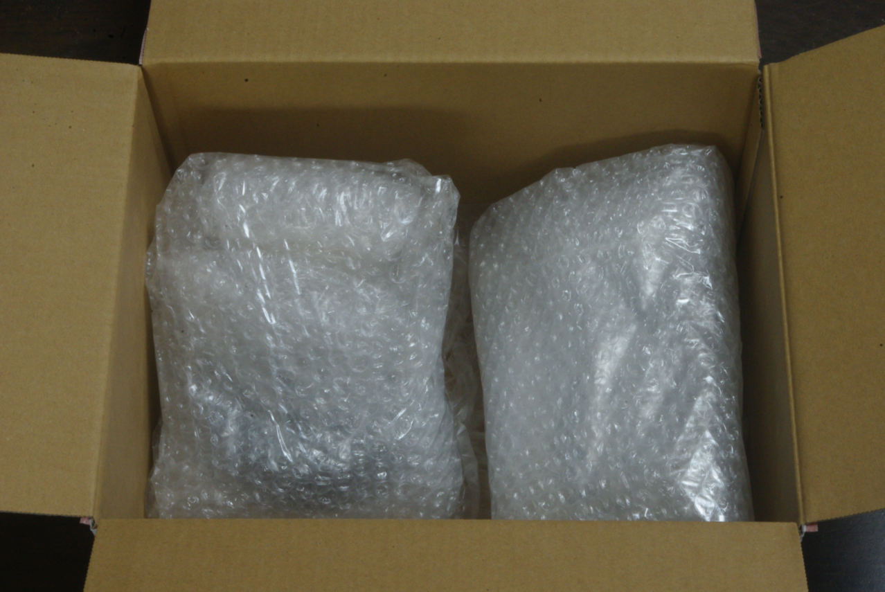 2品とも陶器製ということで、1品づつエアーキャップで丁寧に包装した上に、ダンボール箱の隙間にはたっぷりエアーバッグを詰め、さらにエアーキャップで入念な梱包が施されていました。