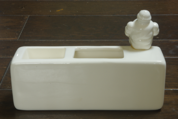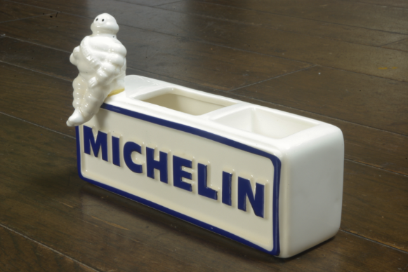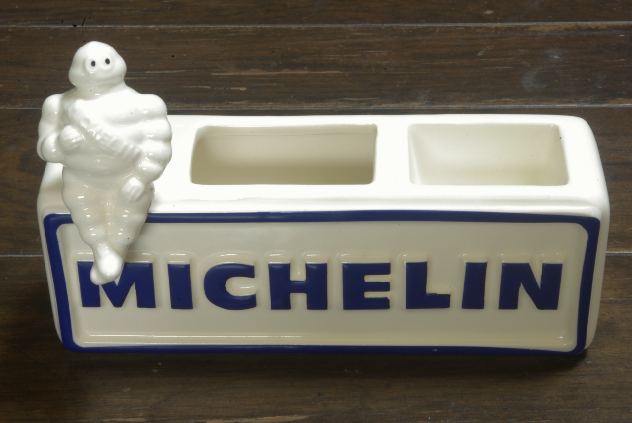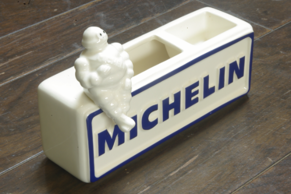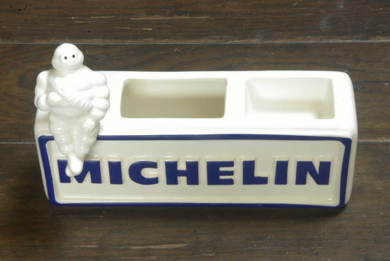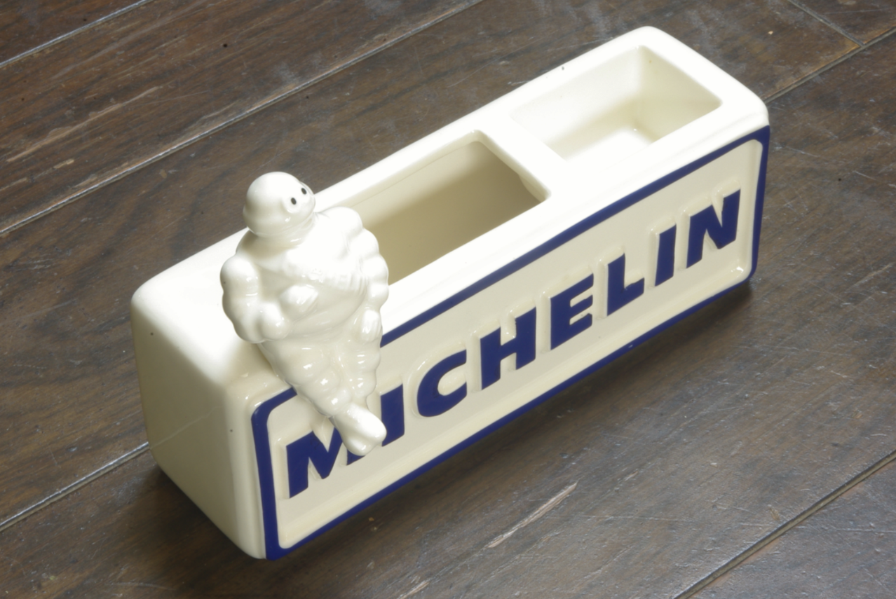 最初の1枚はBibendum のフィギュアが付いた陶器製の灰皿で、2枚目は、同じくBibendum の可愛らしいフィギュアの付いた陶器製のペン立てです。