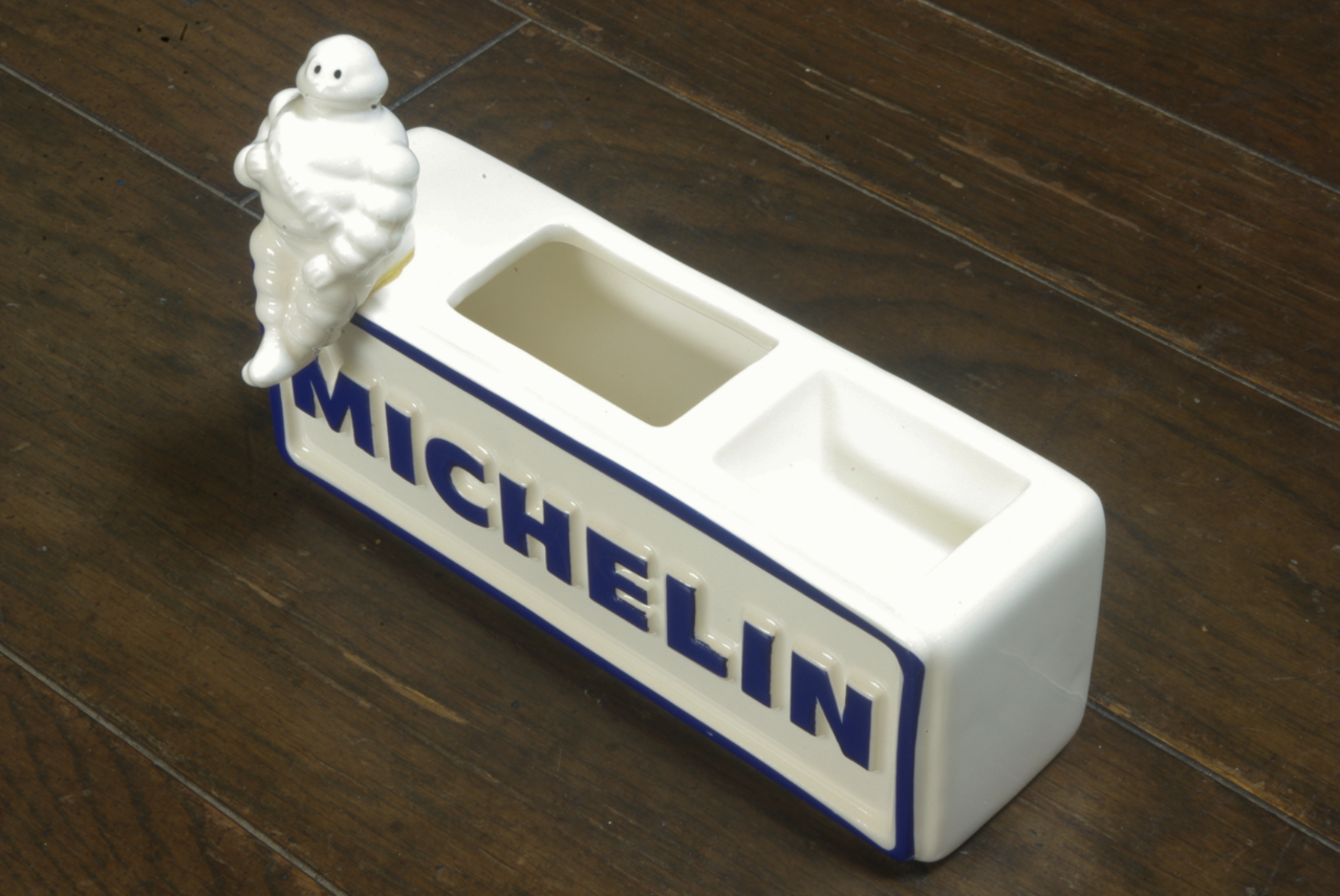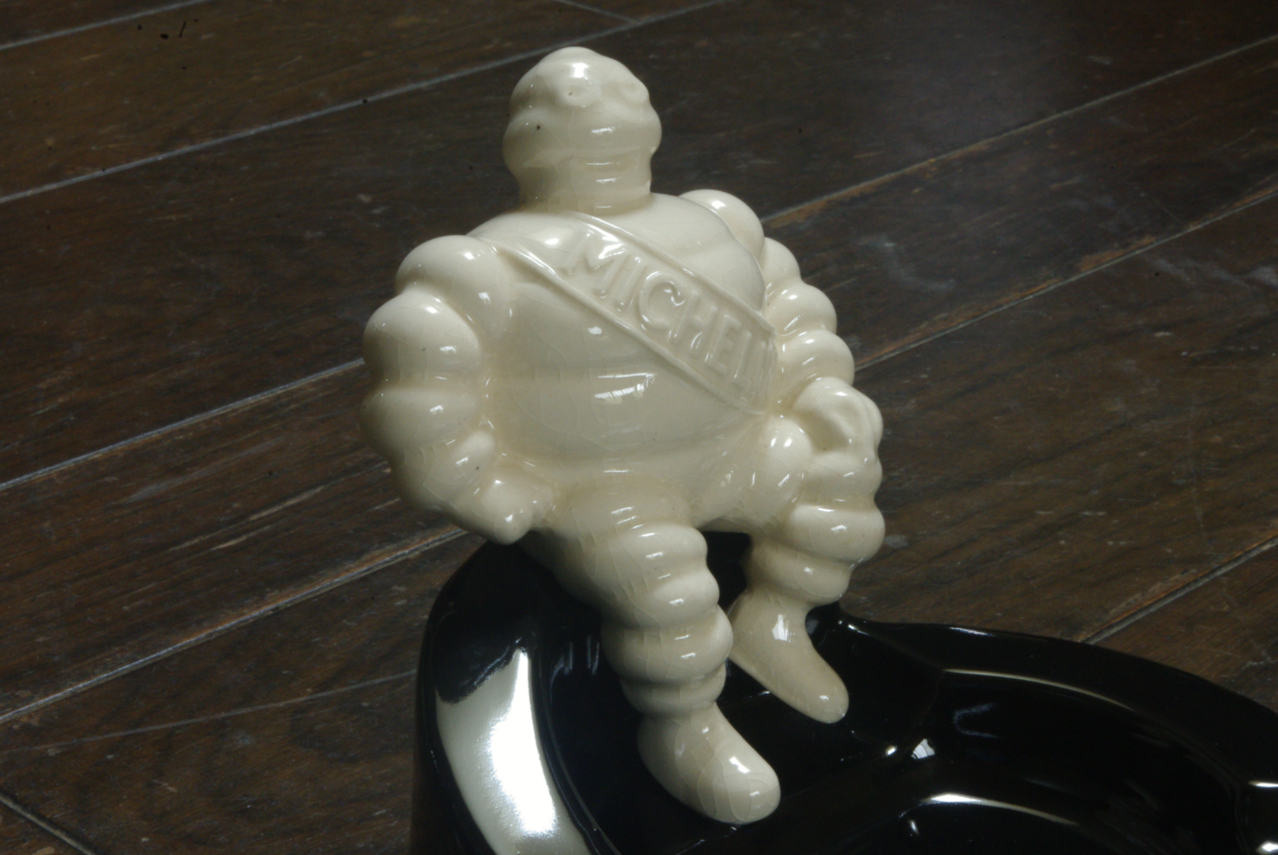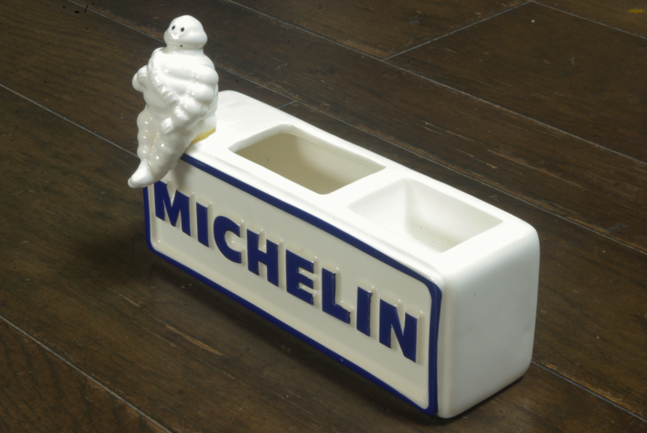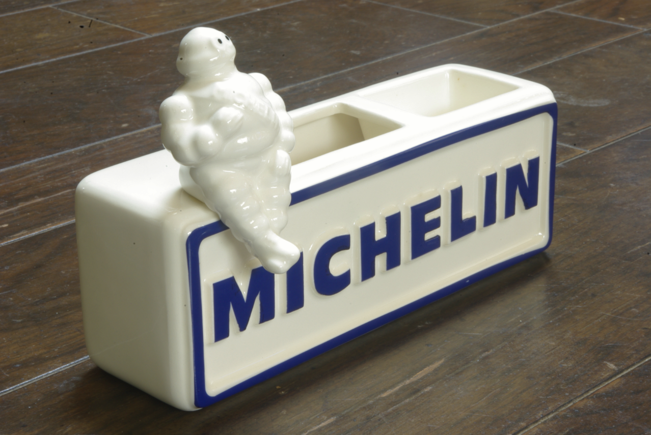 最初の1枚はBibendum のフィギュアが付いた陶器製の灰皿で、2枚目は、同じくBibendum の可愛らしいフィギュアの付いた陶器製のペン立てです。
