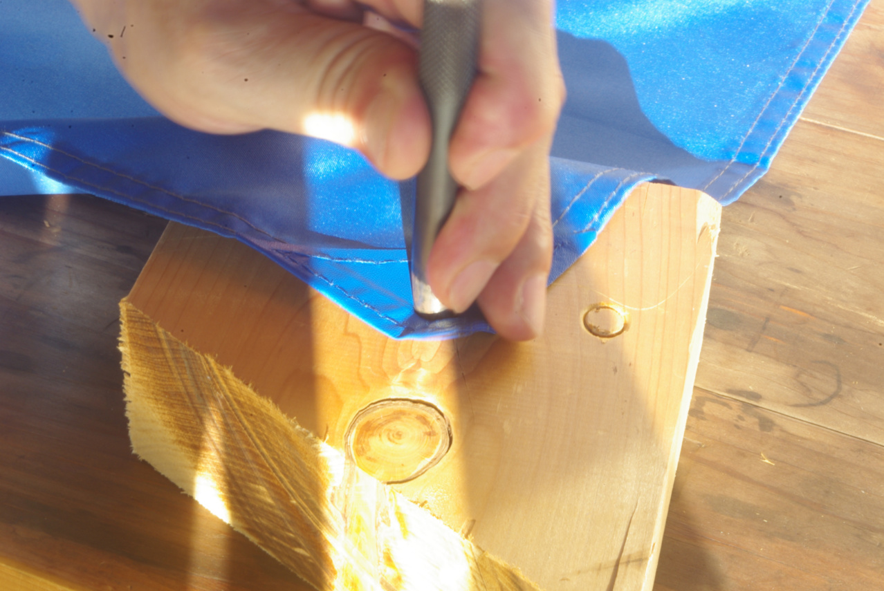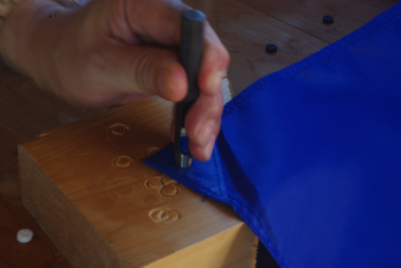 φ8㎜のポンチでハトメ穴を打ち抜きます。