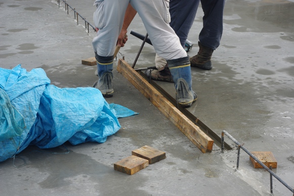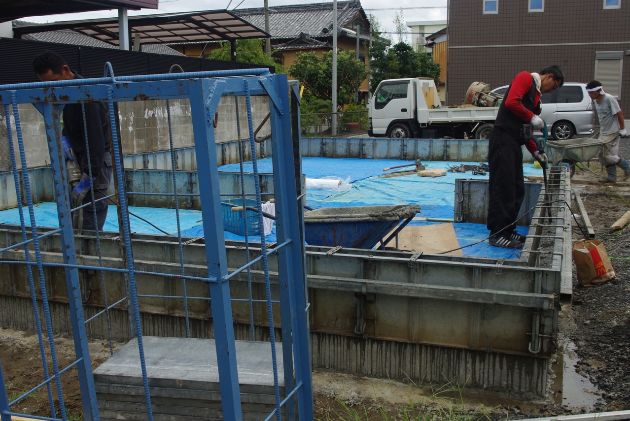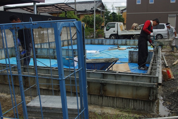 アジテーター車が到着して、早速コンクリート打設作業が始まりました。